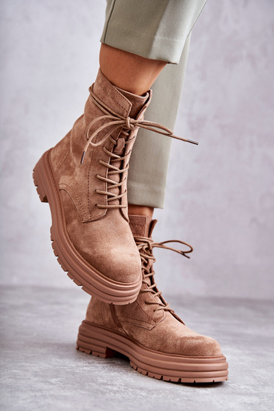 Чоботи замшеві на шнурівці з декором Nicole 2750 Beige