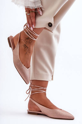 Жіночі балетки на шнурівці, прикрашені шпильками, бежевого кольору Jange