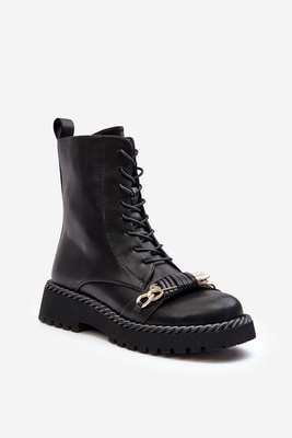 Жіночі шкіряні черевики робочі з декором чорні SBarski MR870-68