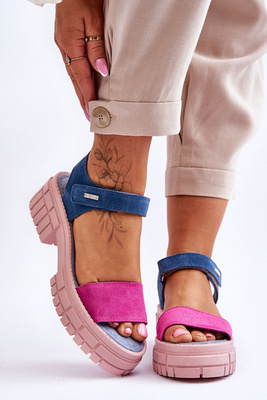 Жіночі замшеві босоніжки Big Star LL276034 синьо-рожеві