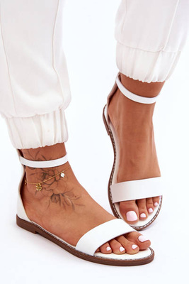 Шкіряні плоскі сандалі на блискавці Білі Millou