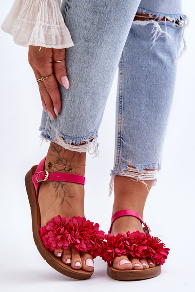 Жіночі босоніжки з текстильними квітами Fuchsia Fiori