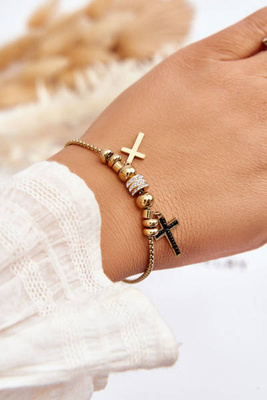 Елегантний жіночий браслет-хрестик із золотими цирконами