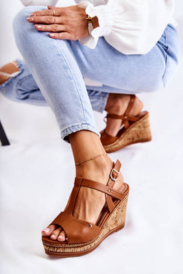 Класичні шкіряні босоніжки на танкетці коричневого кольору Valorin