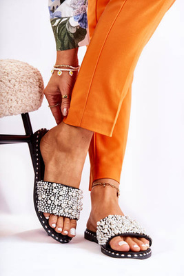 Жіночі шкіряні тапочки з пряжкою Black Devia