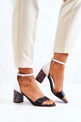 Чорно-сріблясті шкіряні сандалі на штанзі Lorene