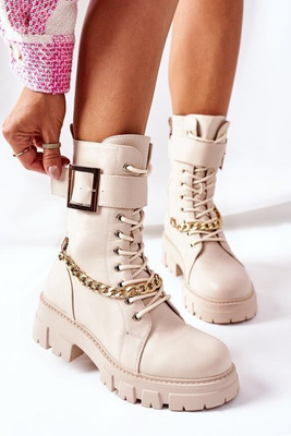 Утеплені чоботи на блочному каблуці Бежеві Саллі