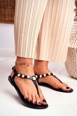 Жіночі гумові босоніжки Перли Чорні Японські Деніз