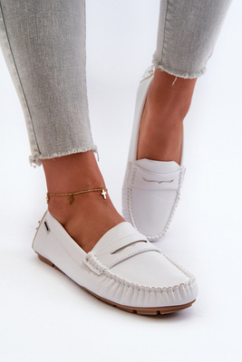 Білі жіночі мокасини з вирізом з еко шкіри Tinami