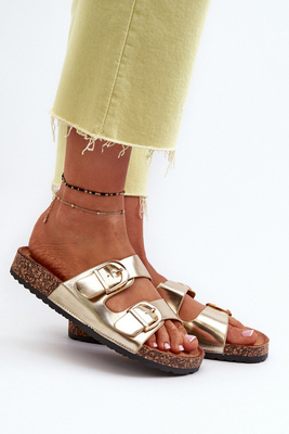 Жіночі коркові босоніжки на платформі з золотими ремінцями Doretta
