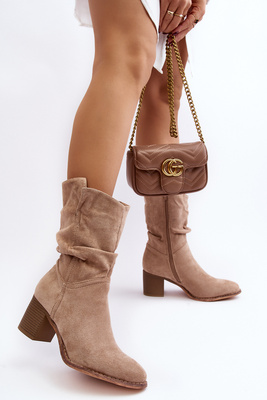 Жіночі замшеві чоботи на каблуці бежеві Mebassa
