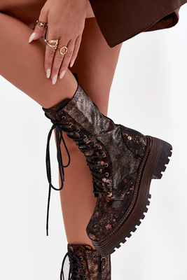Шкіряні чоботи на платформі з підкладкою Maciejka 06565-02 коричнево-золоті
