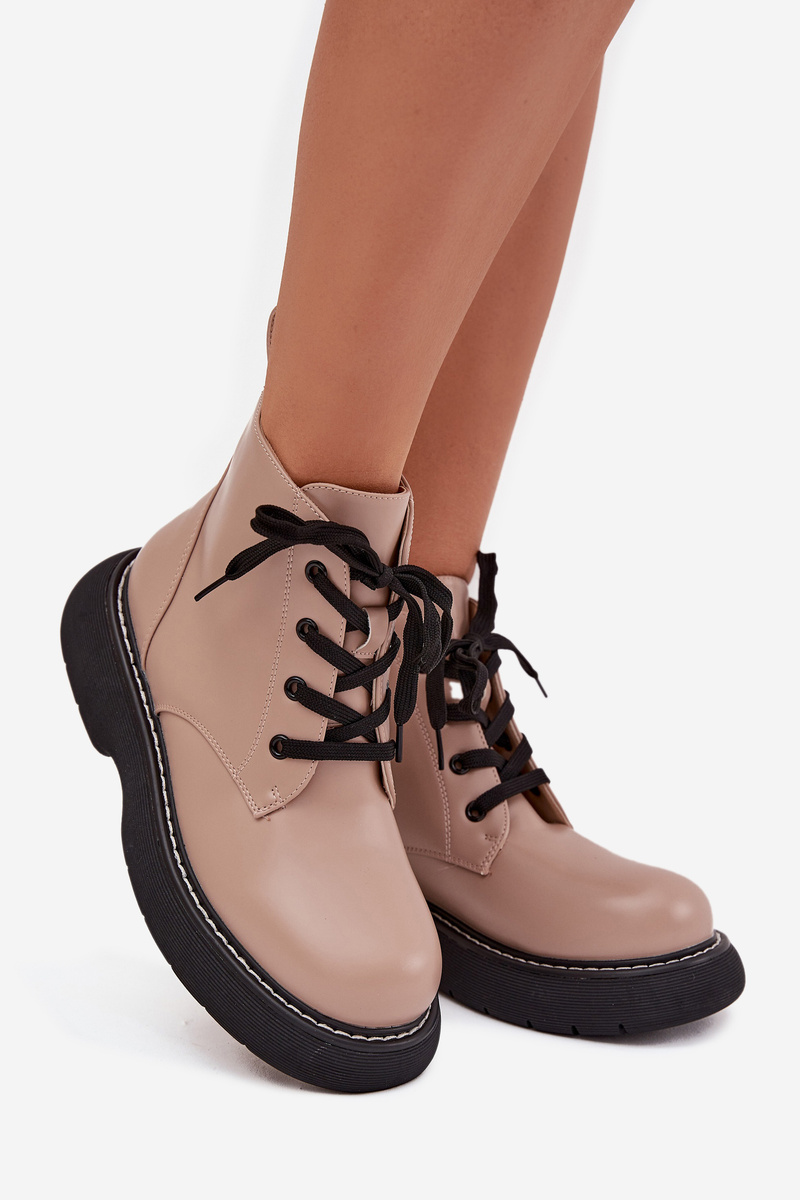 Ізольовані жіночі ботильйони на платформі з шнурками темно-бежеві Harmine
