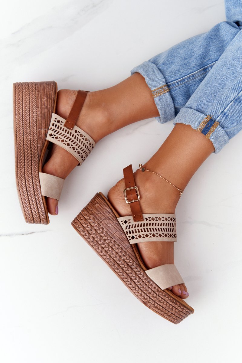 Ажурні босоніжки на танкетці S.Barski GD-47 Biege