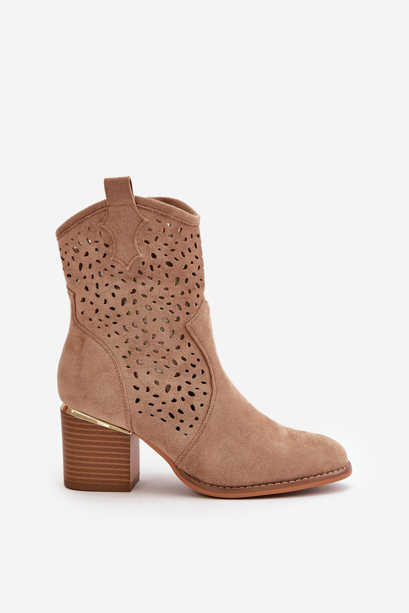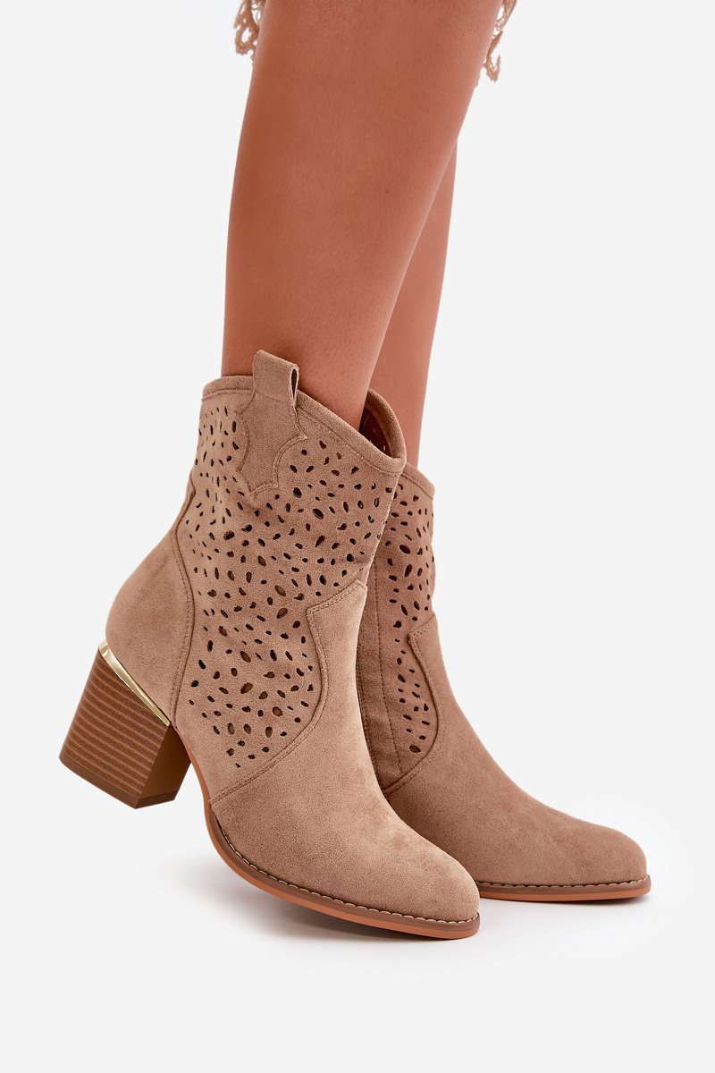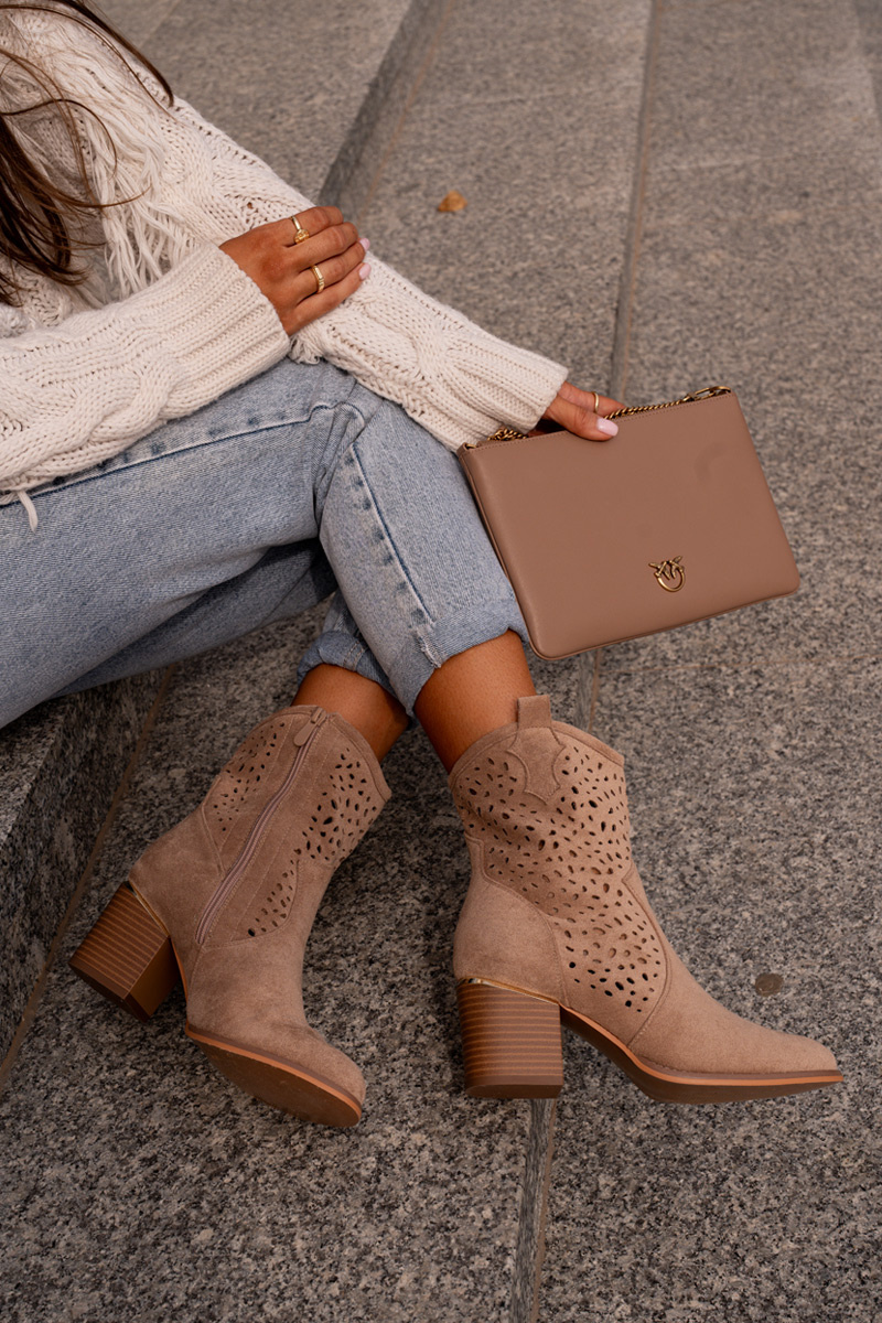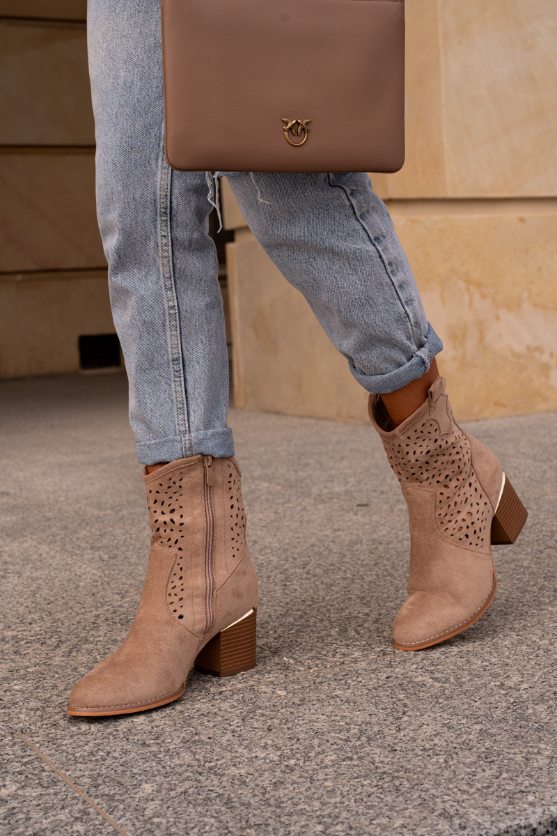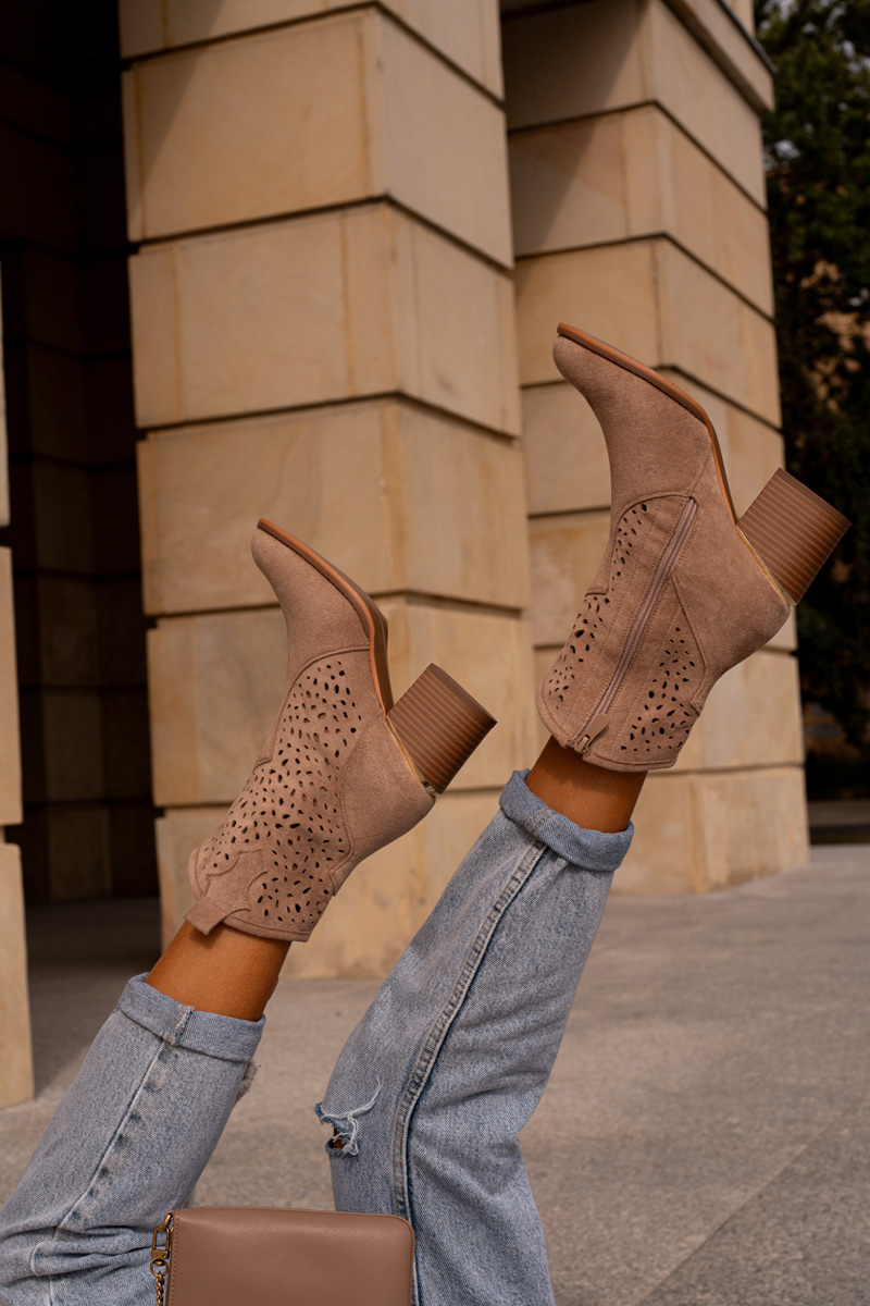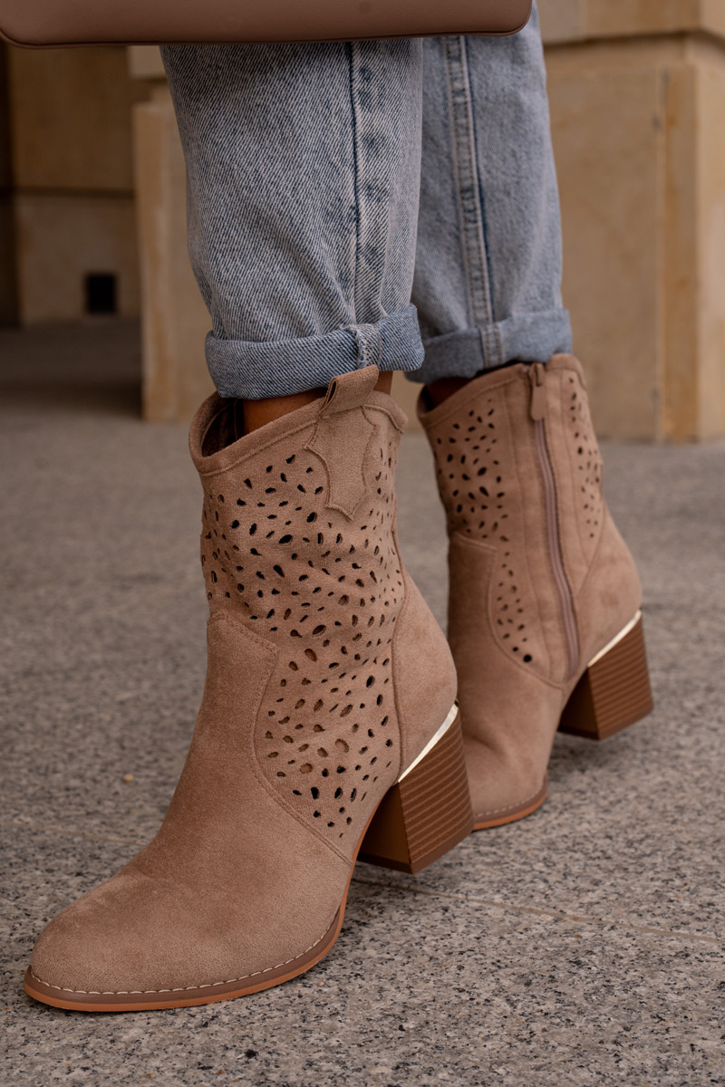 Ажурні ботильйони на каблуці з еко замші на блискавці темно-бежеві Sevana