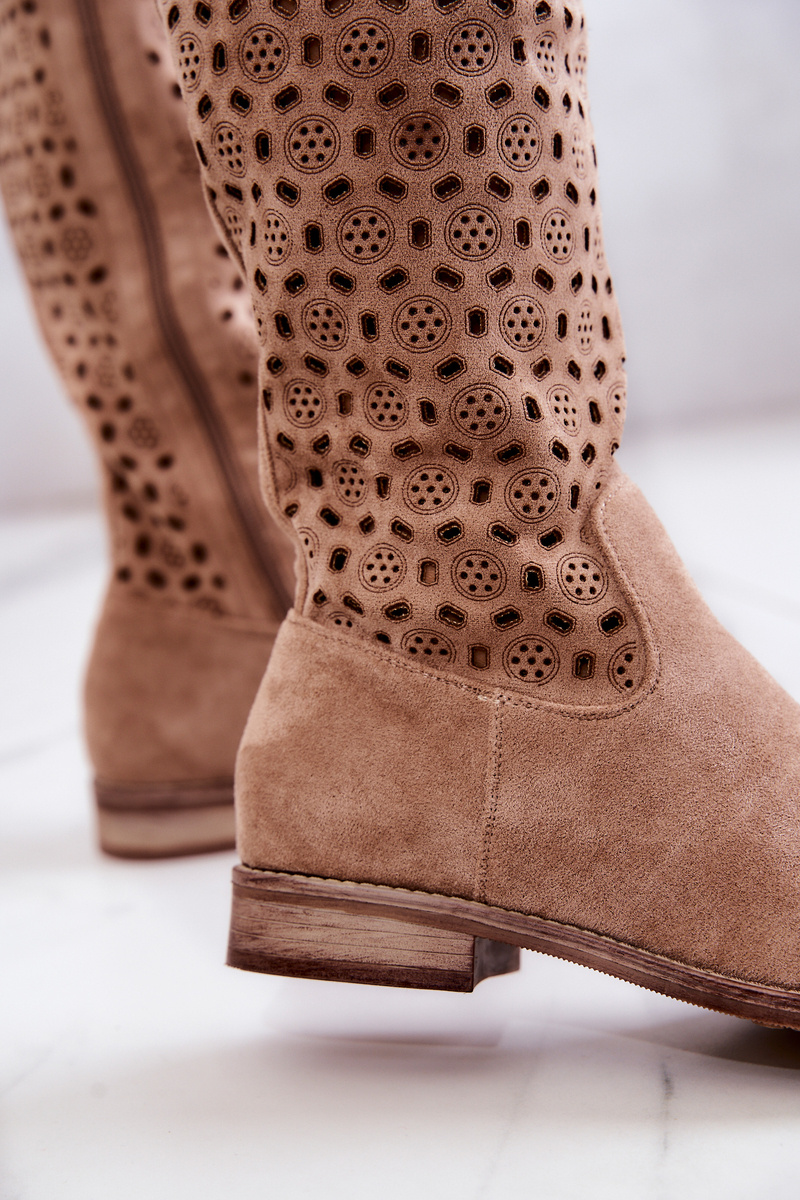 Зручно і стильно - саме так ви почуватиметеся в цій моделі чобіт! Ажурний верх з еко замші. Взуття має якісну устілку з екошкіри, посилений каблук і блискавку, що полегшує взування. Комплект на плоскій каблуці. Обов'язковий атрибут кожної прихильниці ажурних чобіт! При виборі розміру скористайтеся таблицею розмірів.