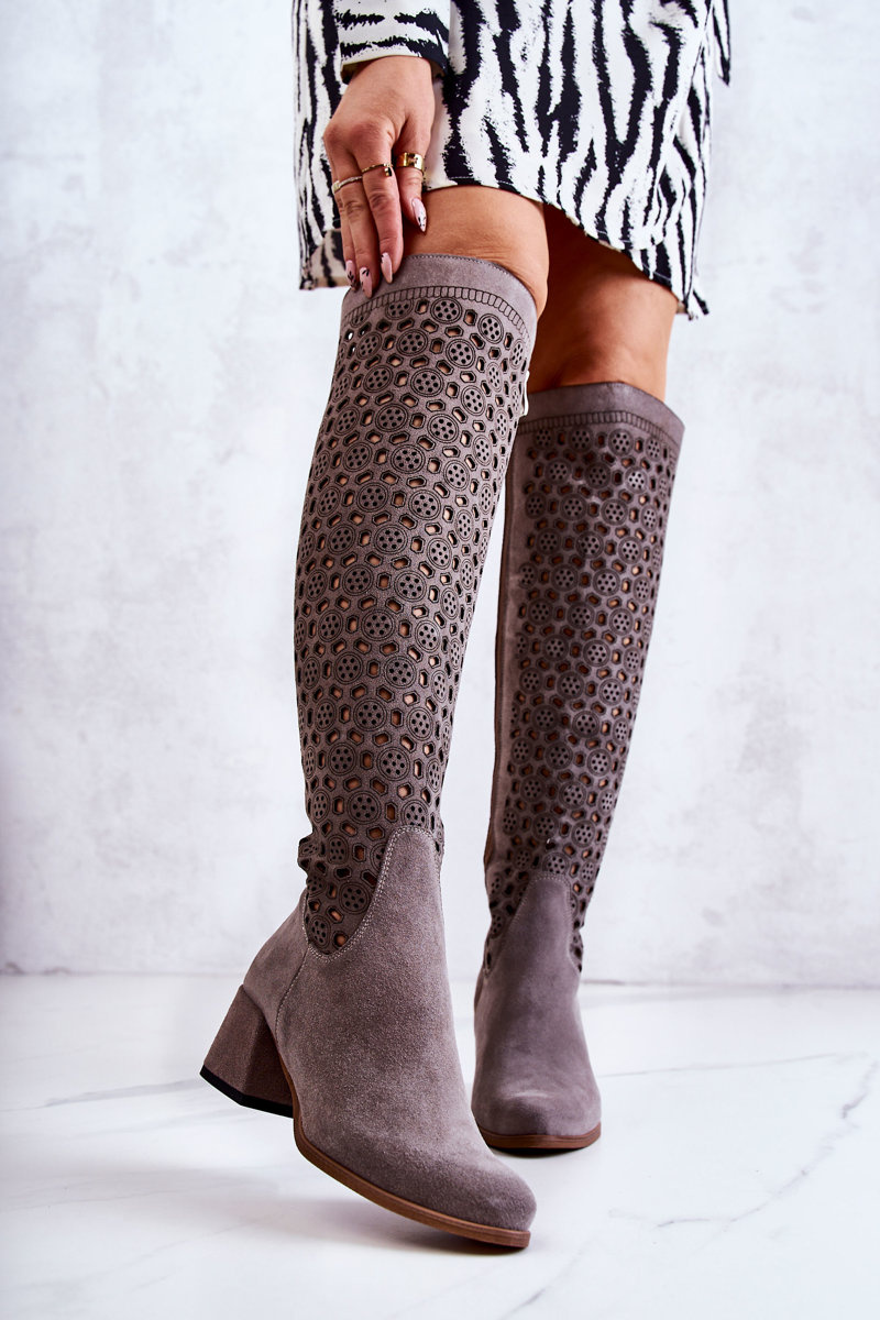 Чудесні черевики виготовлені з високоякісної натуральної замші. Мають цікавий ажурний візерунок. Гострий носок. Широкий каблук на шпильці м'яко піднімає силует. Блискавка розташована по всій висоті верху. Чудова модель, яка повинна бути у вашому гардеробі! Під час вибору розміру зверніться до таблиці розмірів