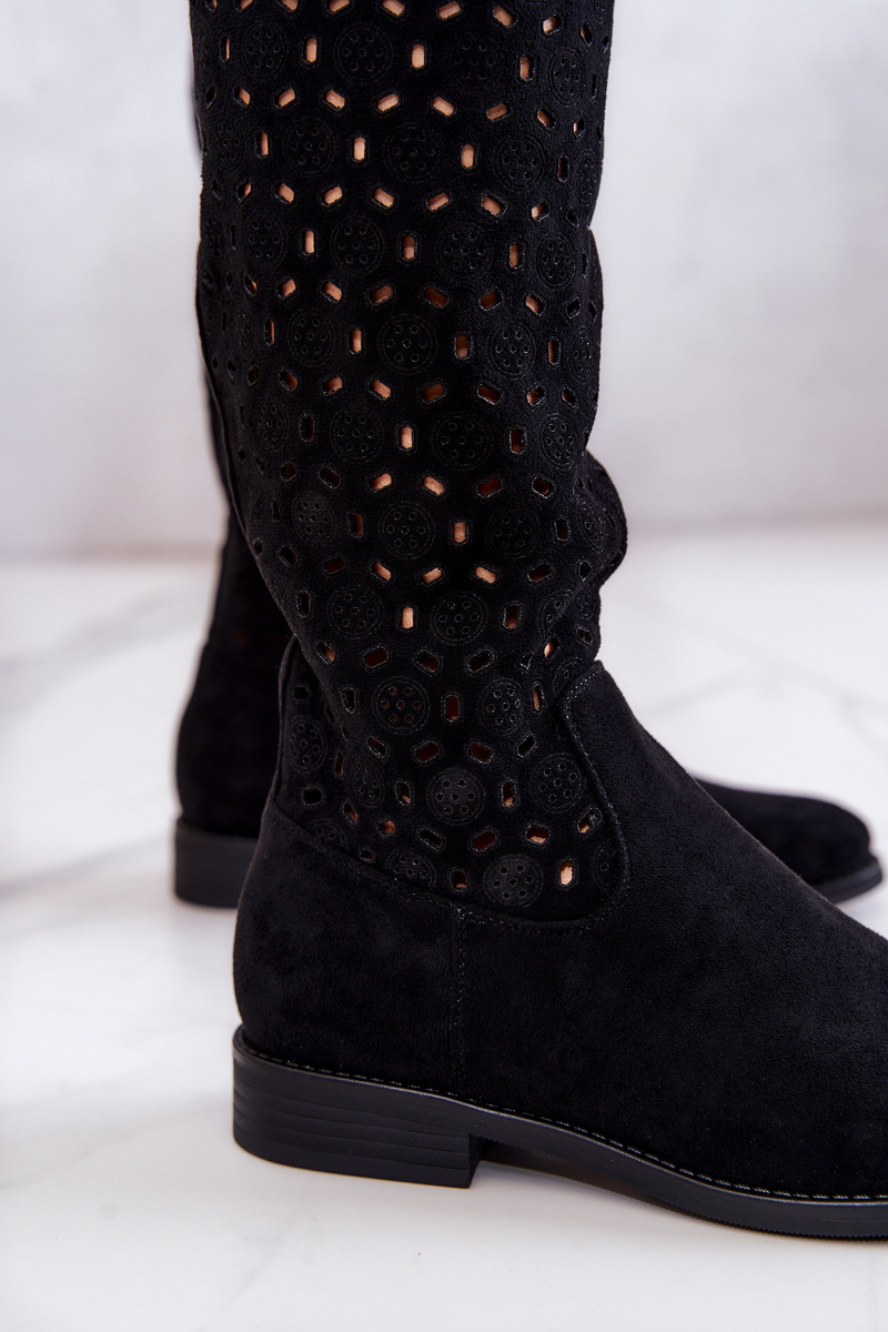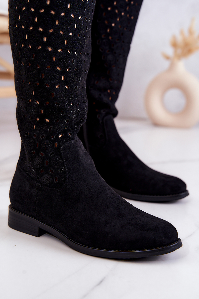 Ажурні замшеві високі чоботи Black Darnell