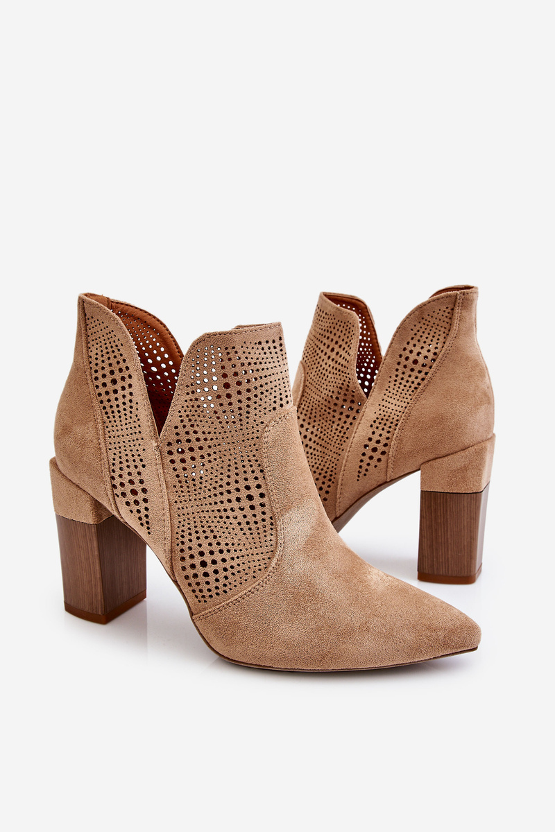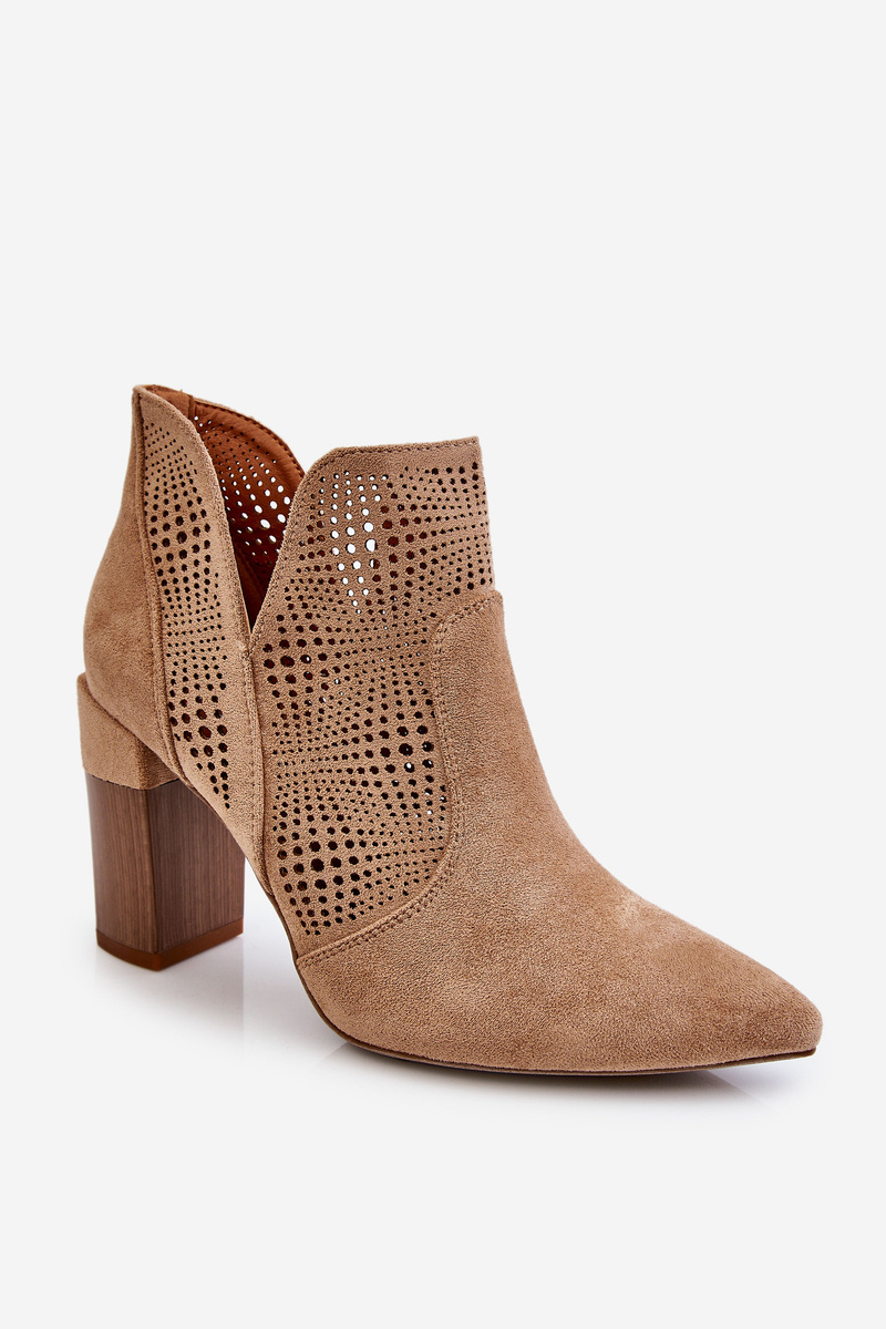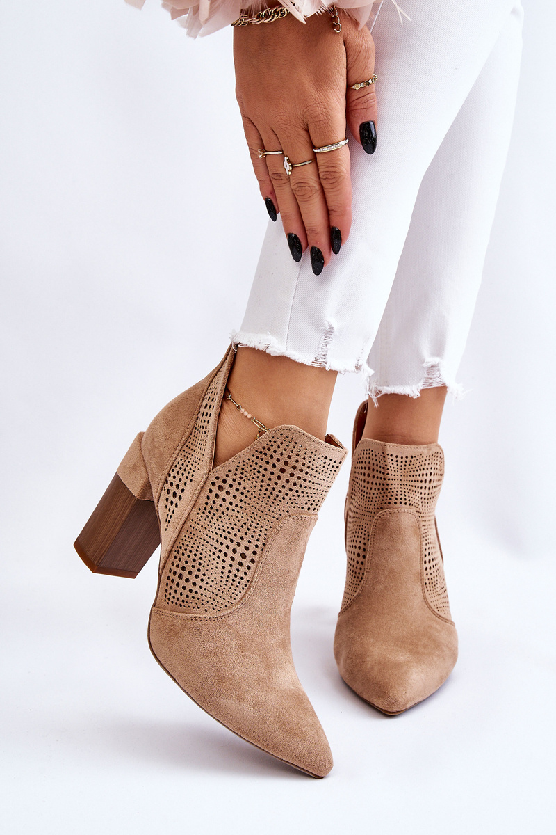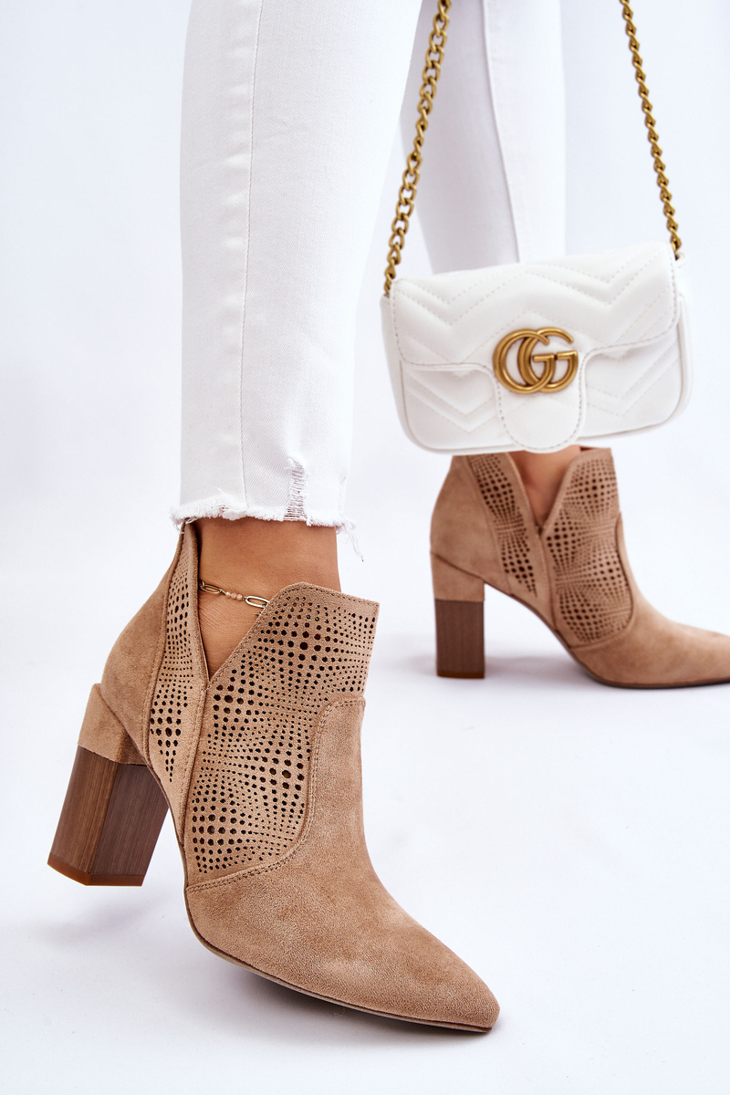 Ажурні замшеві чоботи на підборах бежеві Leanna
