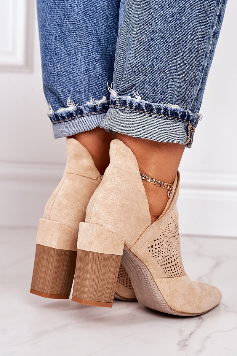 Ажурні чоботи на блочному каблуці Бежеві Michelle
