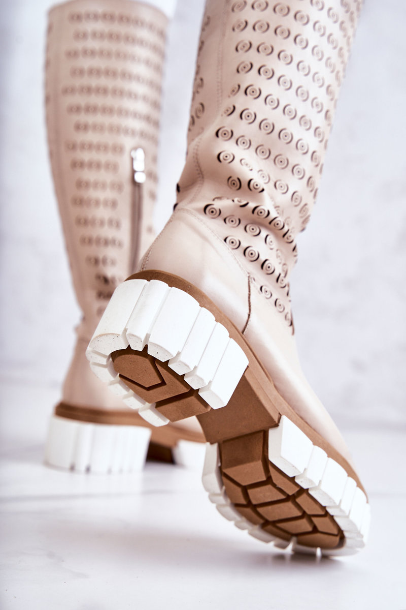 Ажурні шкіряні чоботи на блискавці бежеві Lativia