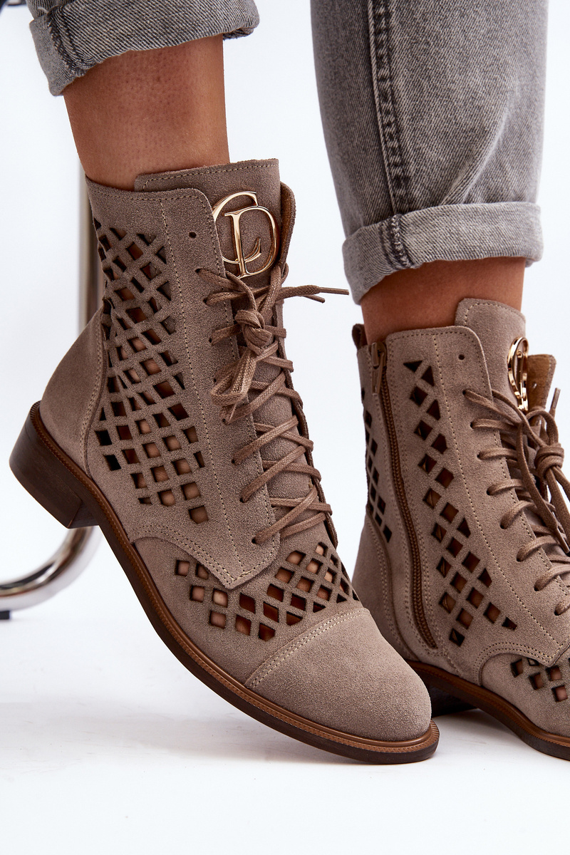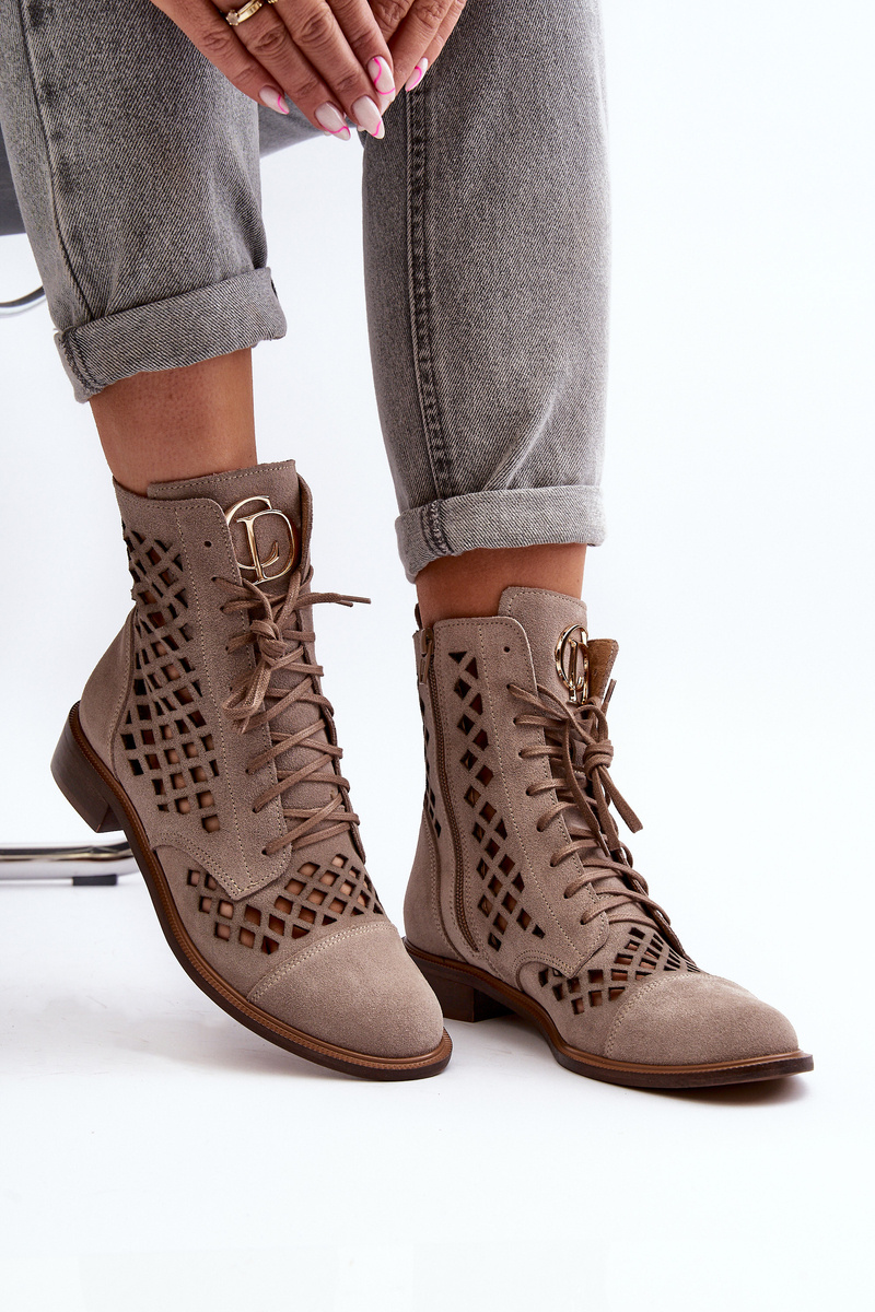 Ажурні шкіряні чоботи Zazoo 2695 Бежеві
