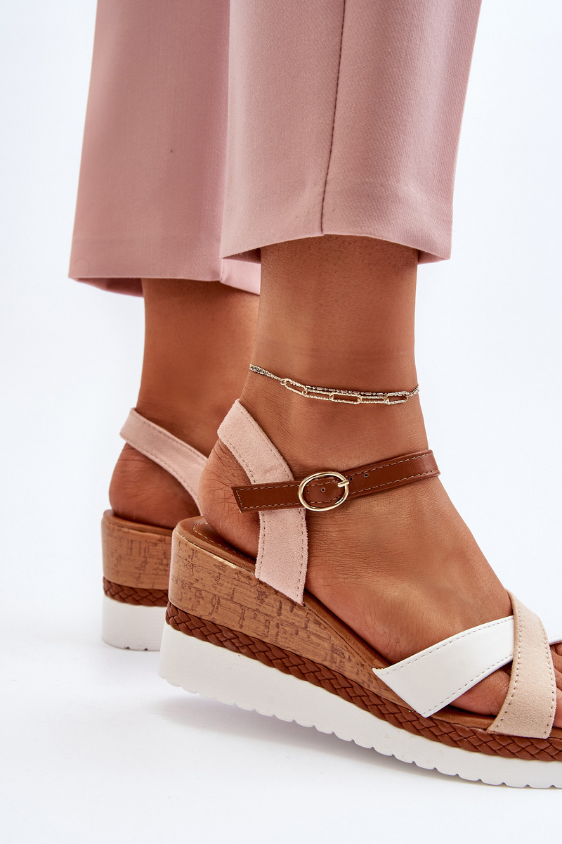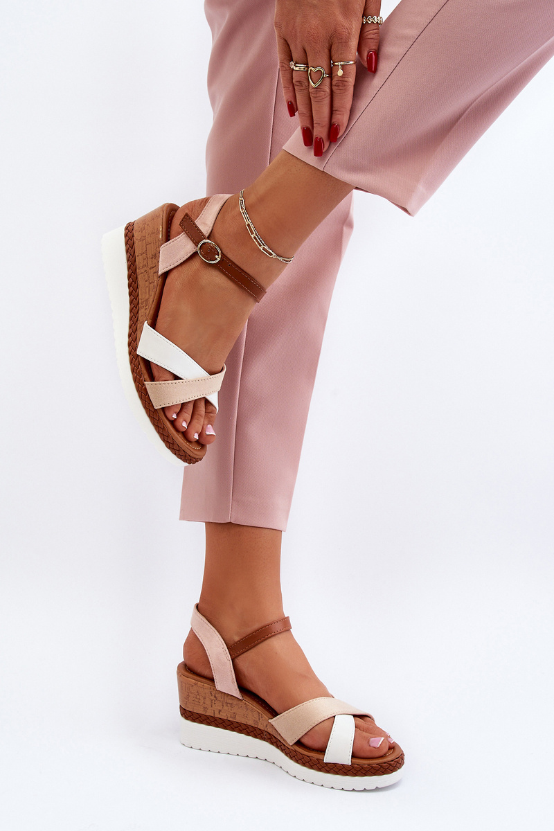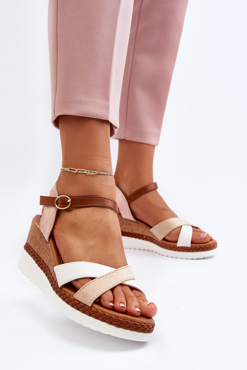 Бежеві босоніжки на танкетці з ремінцями Kioda