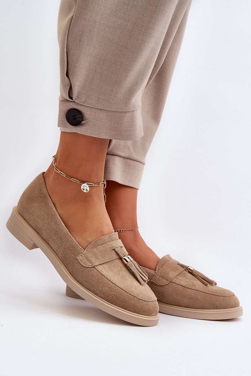 Бежеві жіночі замшеві мокасини на плоскій каблуці Zazoo 3420