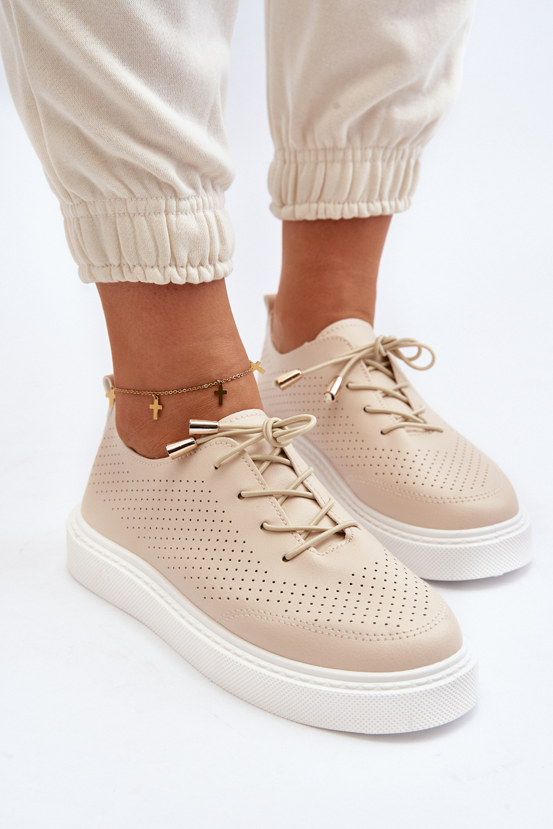 Жіночі кросівки з мереживним верхом. Виготовлена ​​з еко шкіри. Встановлені на гумову підошву. М'яка поролонова устілка забезпечить комфорт під час носіння, до того ж вона знімна. Заокруглені пальці. Ідеально підходить для весни та літа! Обираючи розмір, орієнтуйтеся на таблицю розмірів.