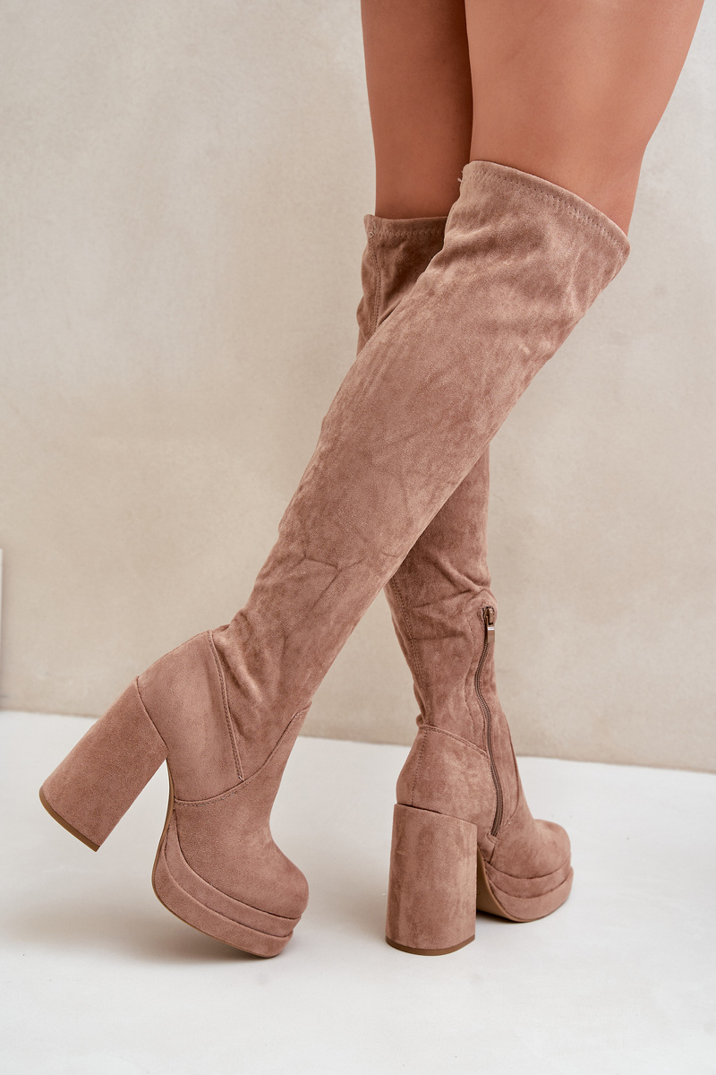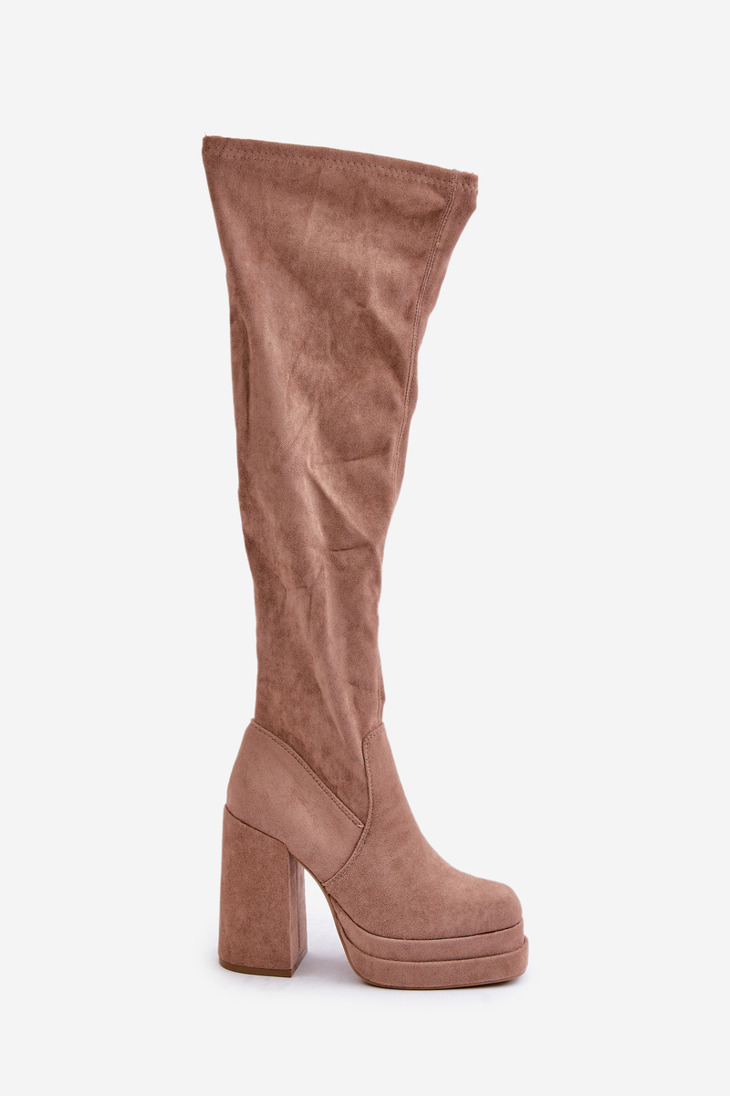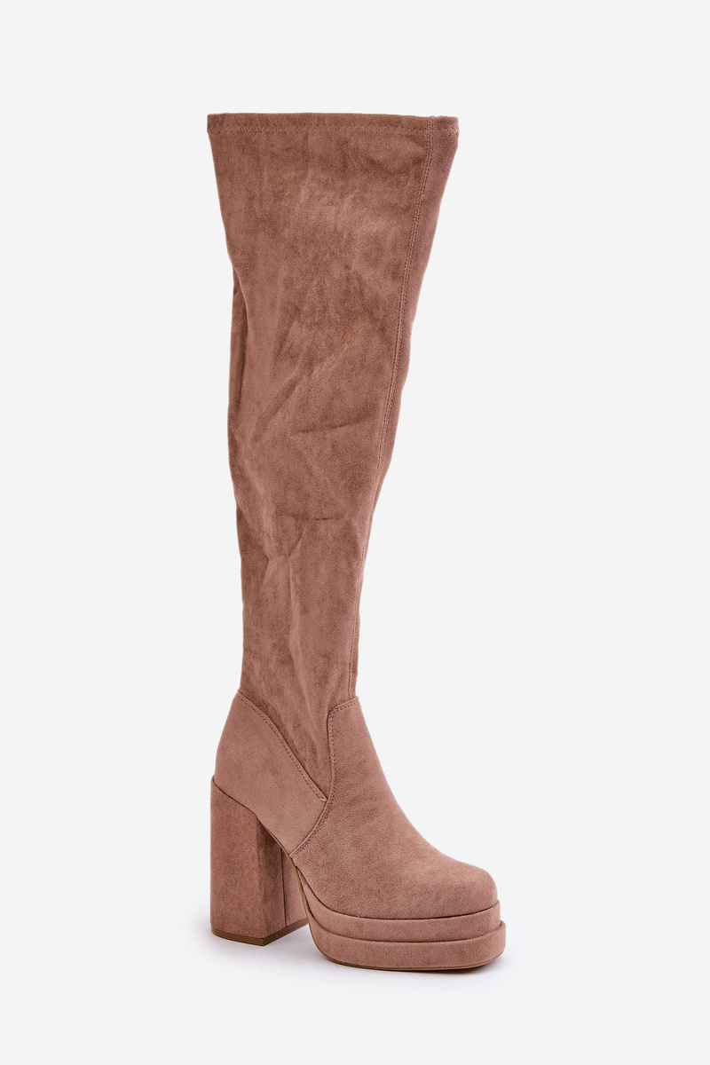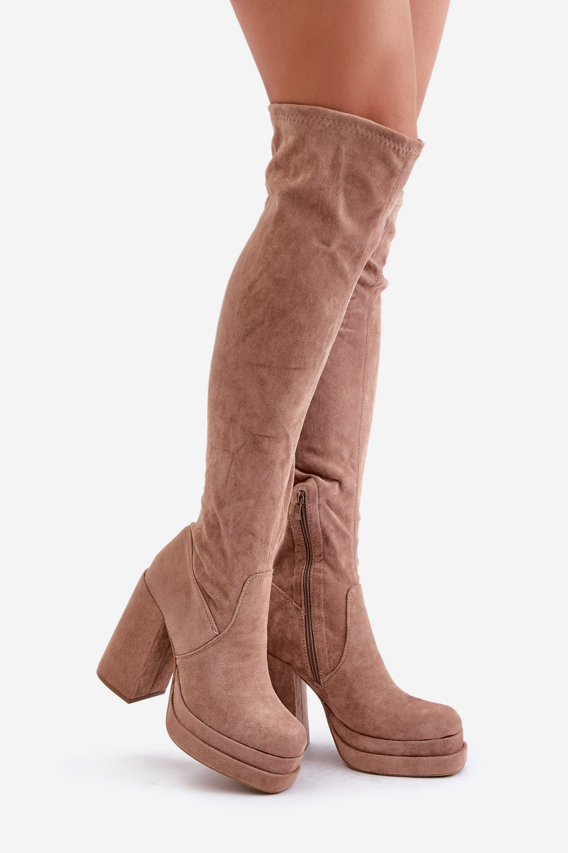 Чоботи з еко-замші – чудовий варіант для любителів модного, але комфортного взуття для прохолодних днів. Модель має високу халяву, яка сягає вище коліна, що додає елегантності та витягує силует. Чоботи не натягуються, але для додаткового комфорту вони мають додаткову блискавку в нижній частині халяви, що полегшує їх надягання. На міцному каблуці та платформі вони забезпечують стійкість і підкреслюють ноги. Салон утеплений тільки на рівні ніг. Ідеально підходить для стилізації з сукнями або спідницями. Обираючи розмір, орієнтуйтеся на таблицю розмірів.