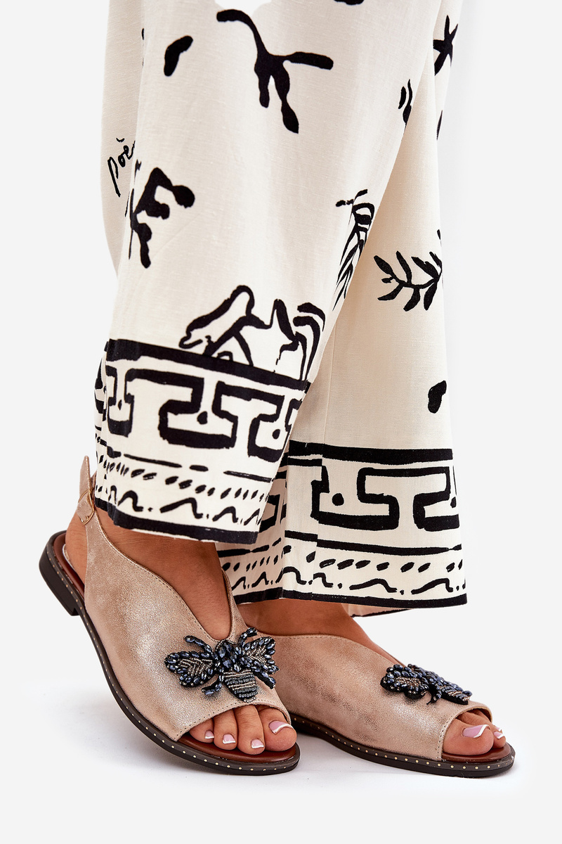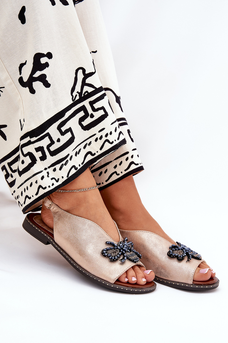 Блискучі Жіночі Сандалі З Декором Плоскі Рожеві Золото Руссона
