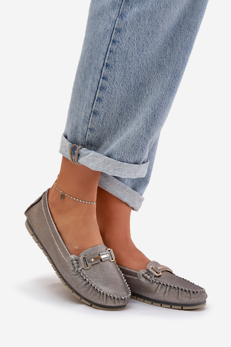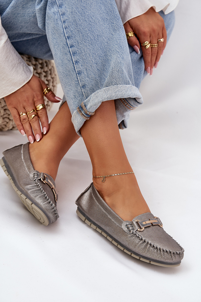 Блискучі Плоскі Мокасини З Натуральної Шкіри D&A LR51-546 Сріблясті
