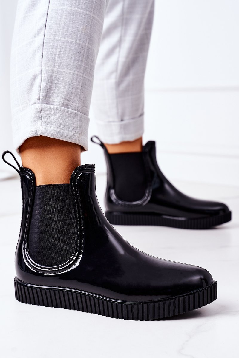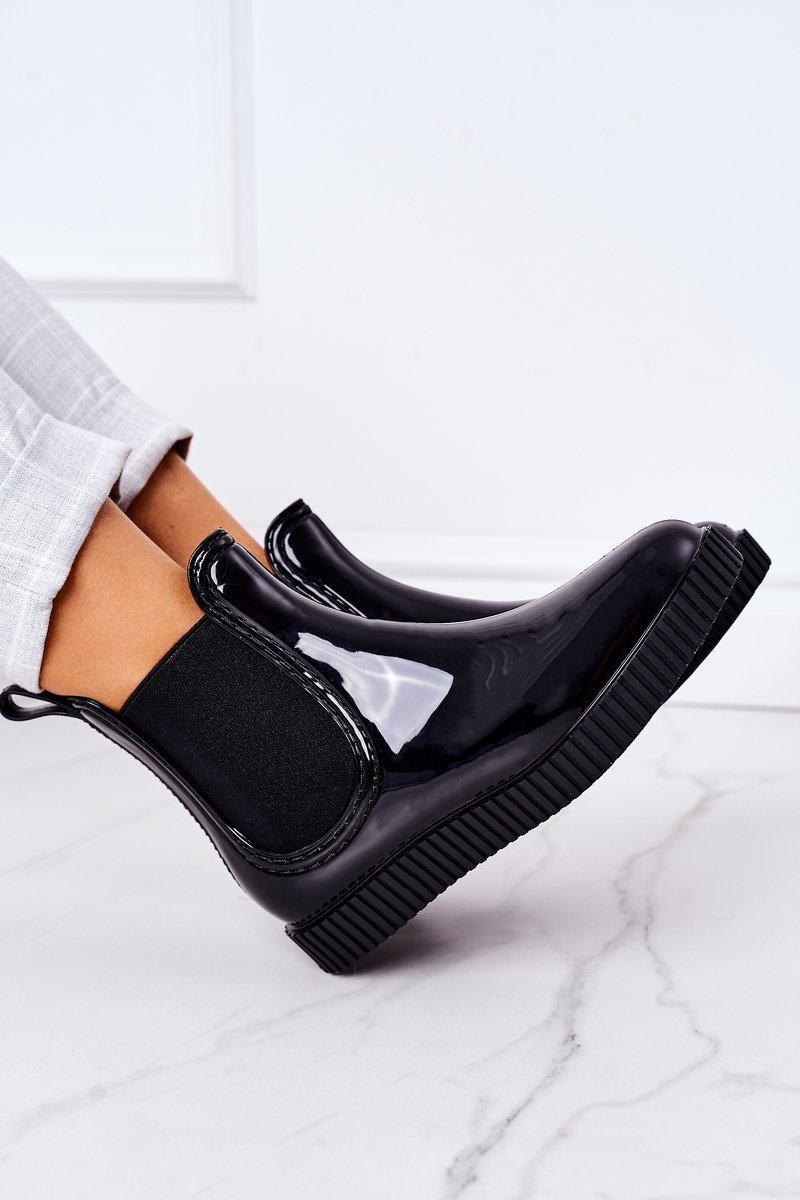Блискучі гумові чоботи калоші на платформі чорний водоспад
