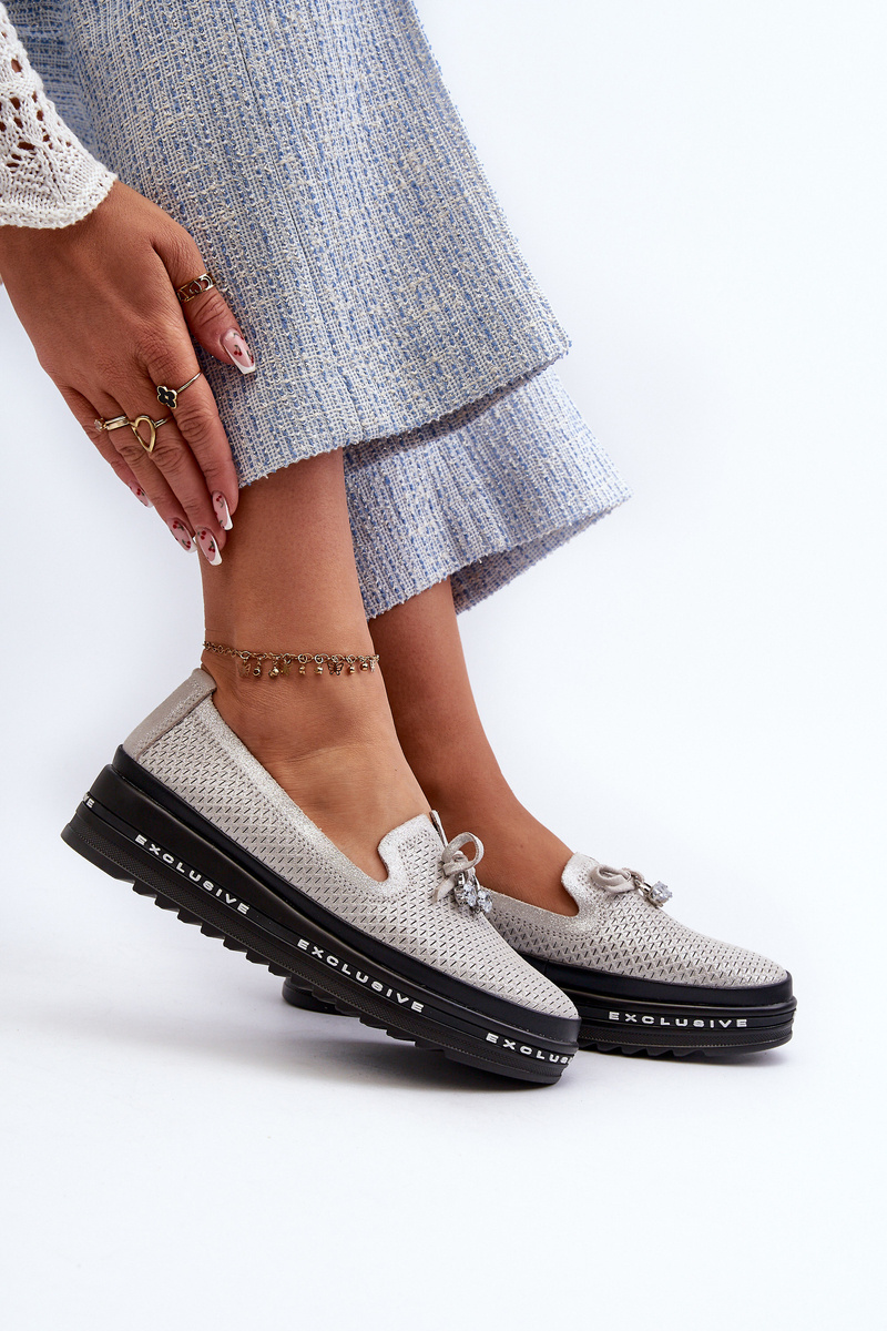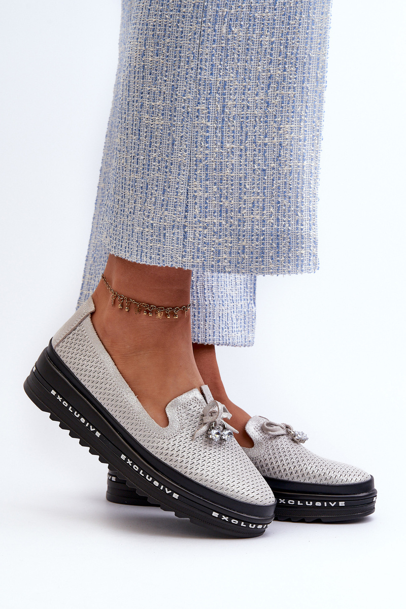 Блискучі жіночі шкіряні лофери на платформі S.Barski LR400 Silver