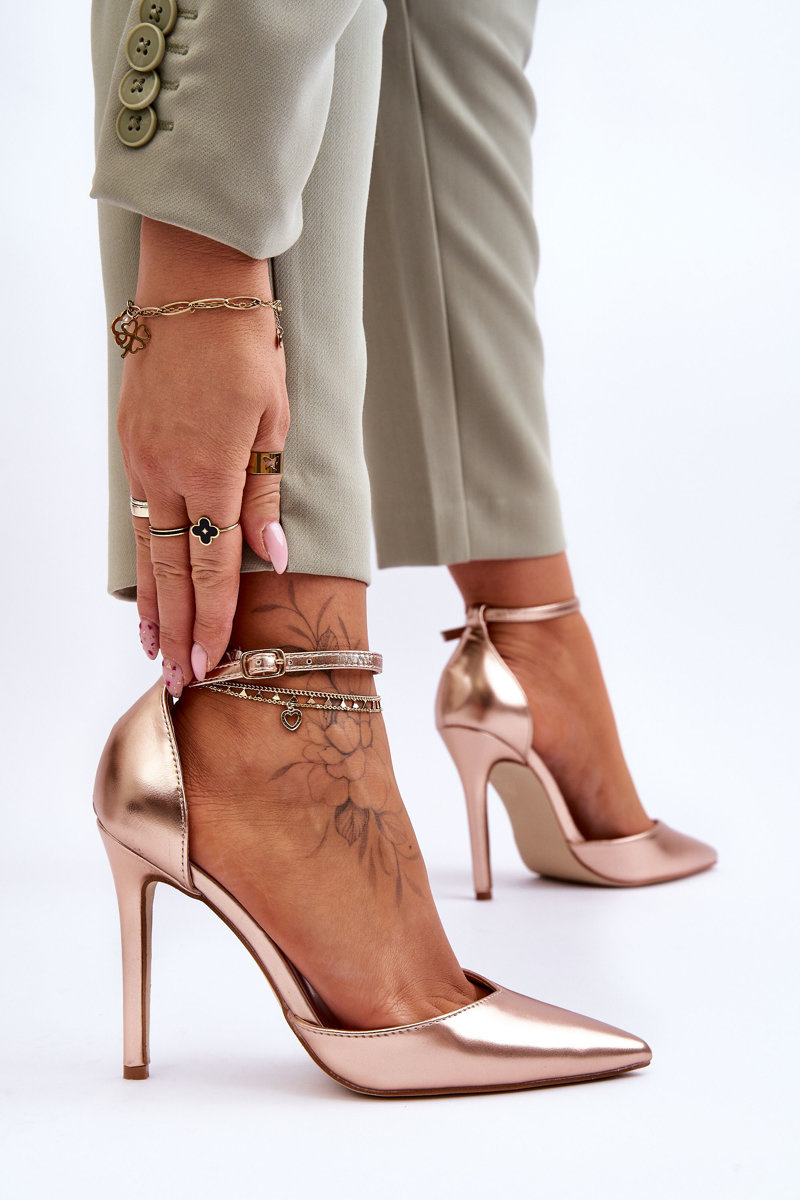 Чудові човники виготовлені з еко шкіри. Ця модель застібається на щиколотку за допомогою регульованого ремінця з пряжкою. Комплект на високому каблуці. М'яка устілка виготовлена ​​з еко шкіри і забезпечить комфорт під час використання. Ця модель ідеально підійде для особливих випадків, таких як побачення, вечірка з друзями або сімейне свято! Обираючи розмір, орієнтуйтеся на таблицю розмірів.