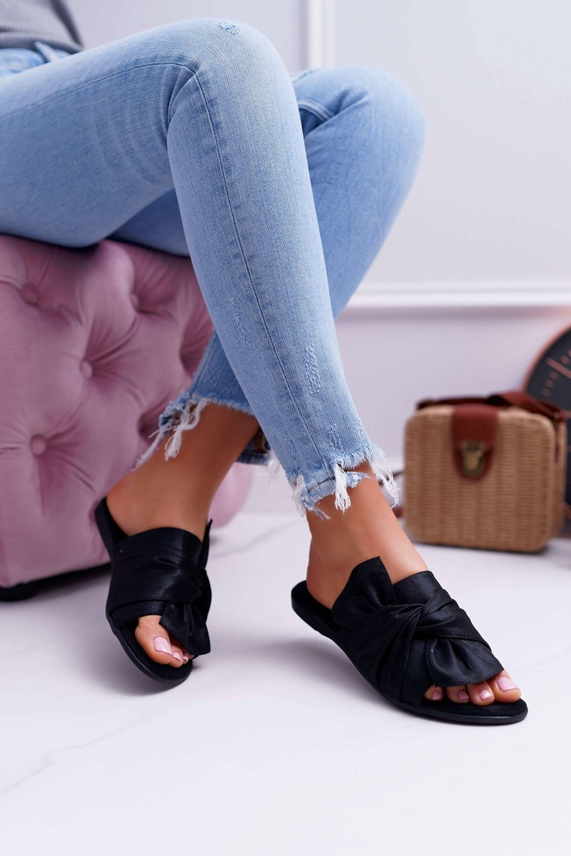 Блискучі шльопанці з краваткою. Чорні Emilia