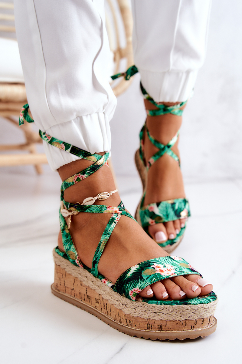 Босоніжки еспадрільї на танкетці Зелені квіти Roxanne