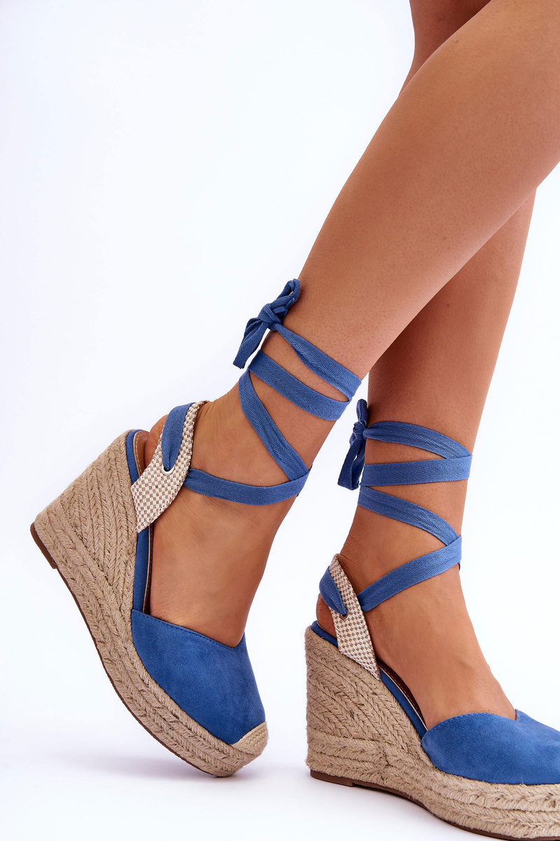 Босоніжки на високій танкетці синього кольору Lendy