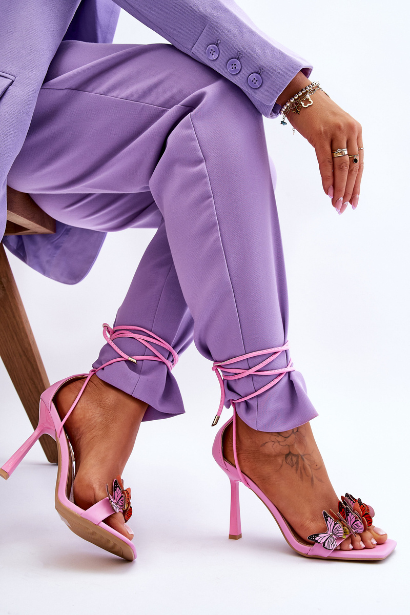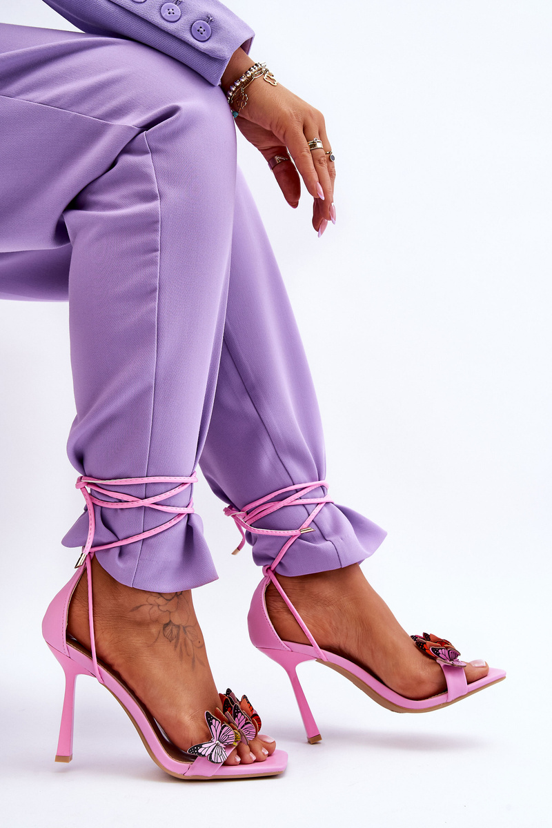 Босоніжки на зав'язках на шпильці з метеликами Рожеві Delmar