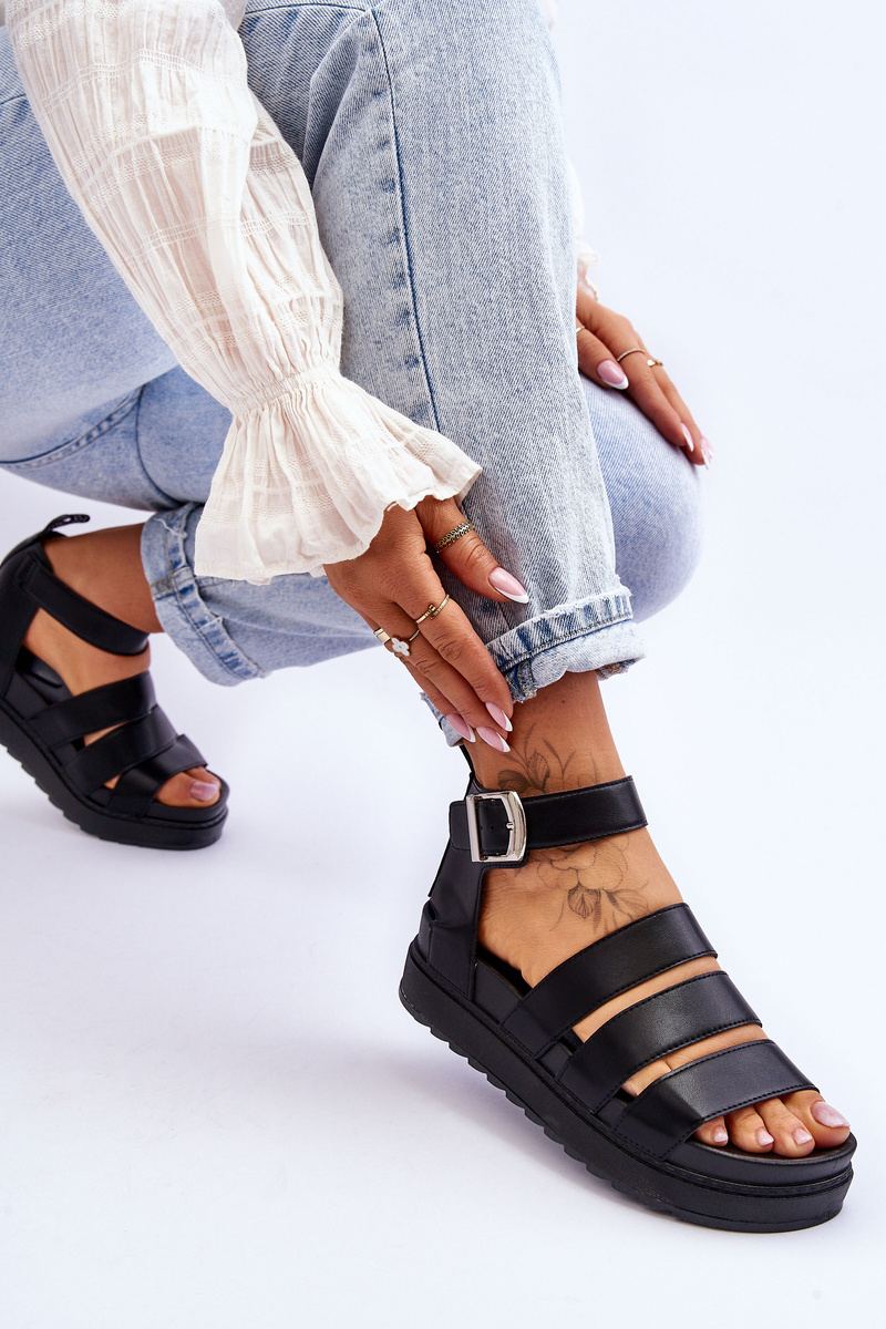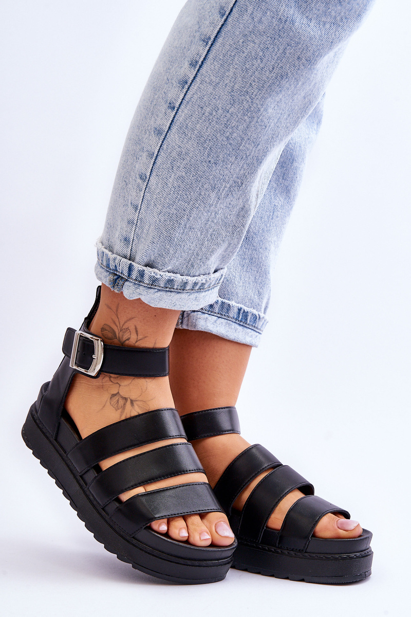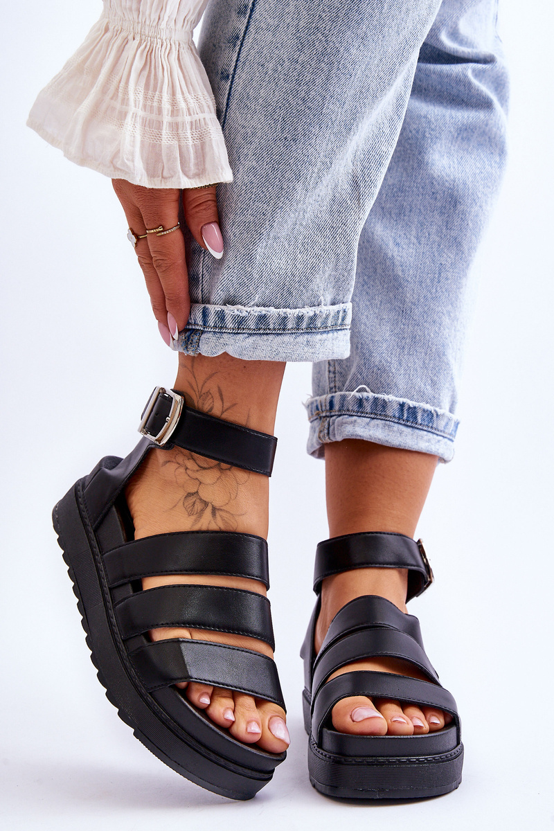 Чудові жіночі босоніжки з високою халявою. Виготовлені з еко шкіри. Дана модель має масивну платформу, на якій розміщується взуття. Босоніжки чудово підходять для спекотних днів. Спереду є ремені, щоб стопа не зсувалася. Дана модель застібається на регульований ремінь з пряжкою. Обираючи розмір, орієнтуйтеся на таблицю розмірів.