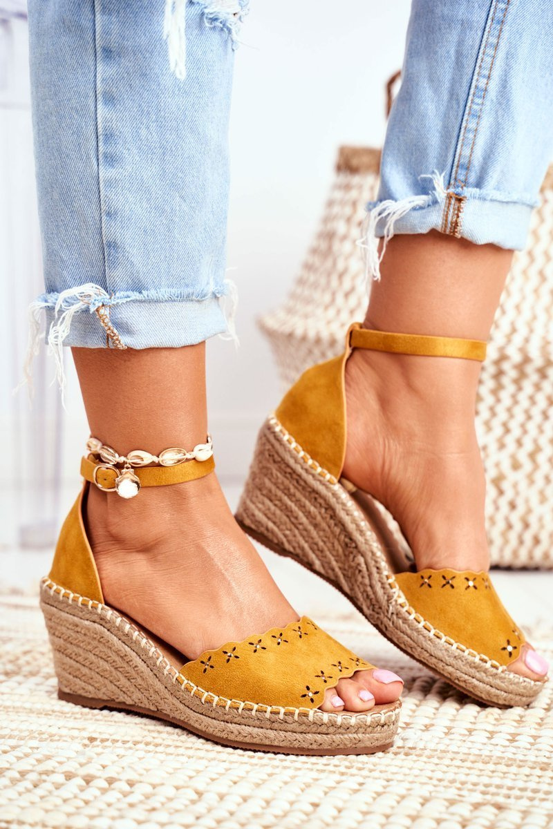 Босоніжки на плетеній танкетці Жовтий Стрілець