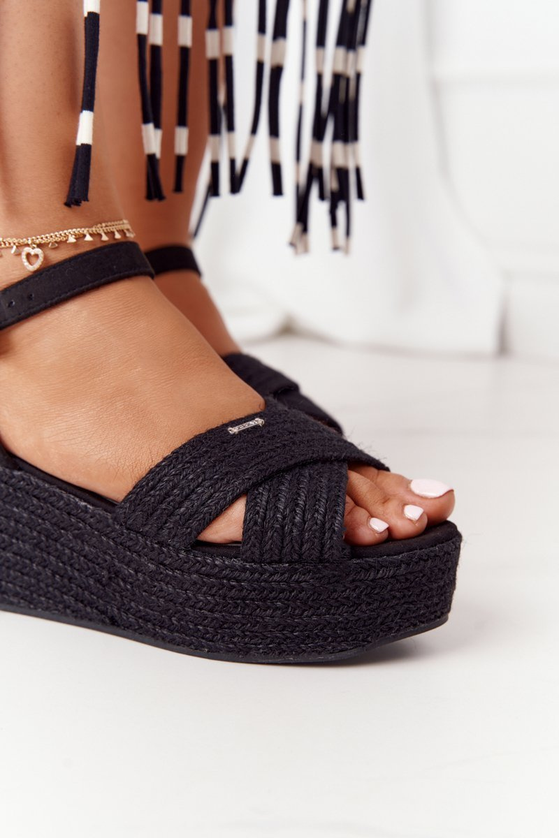 Босоніжки на плетеній танкетці Big Star FF274762 Чорні