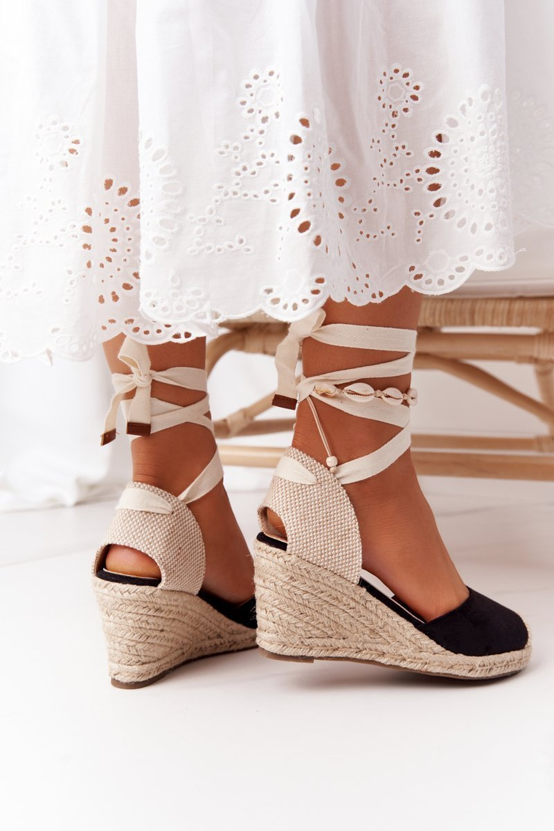 Босоніжки на танкетці зі шнурівкою, чорні Nelly