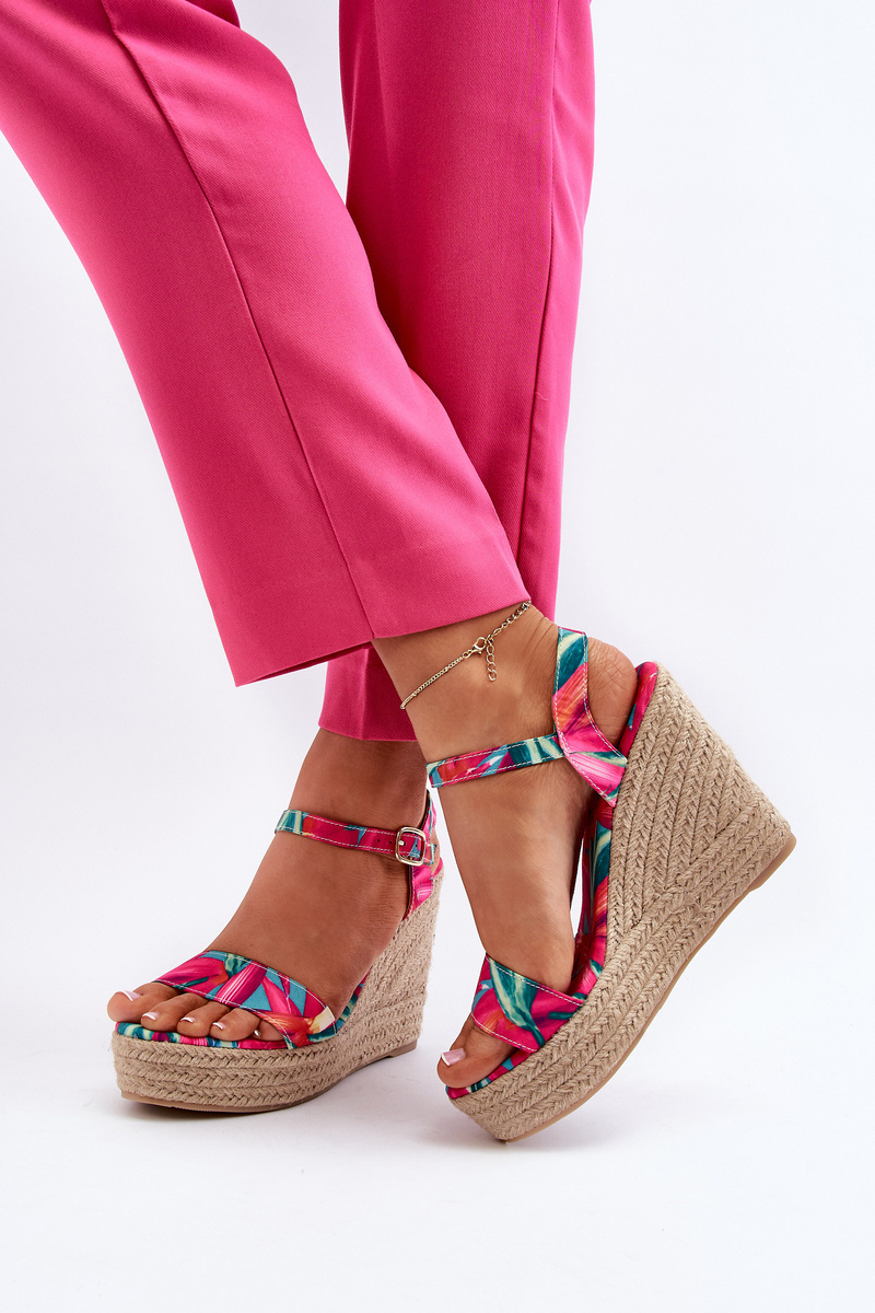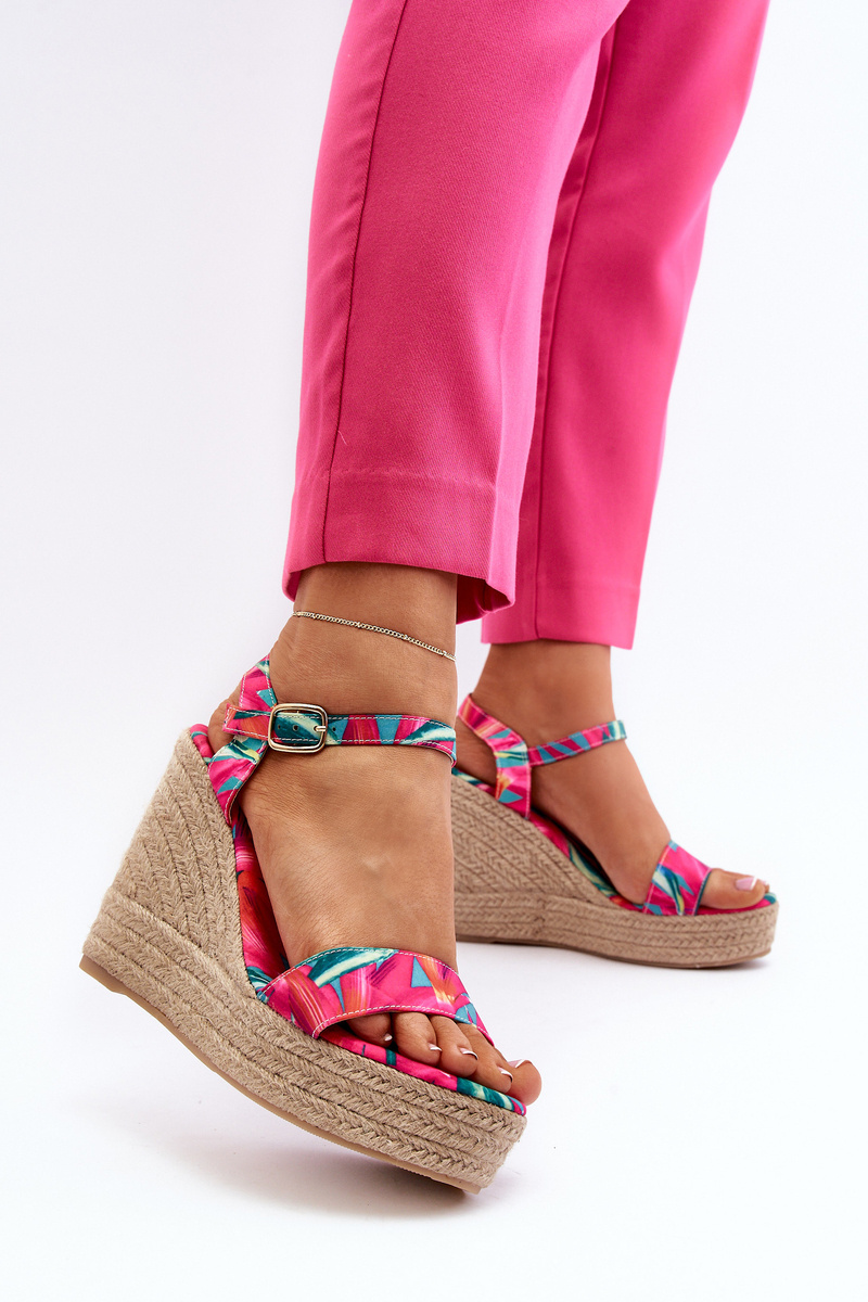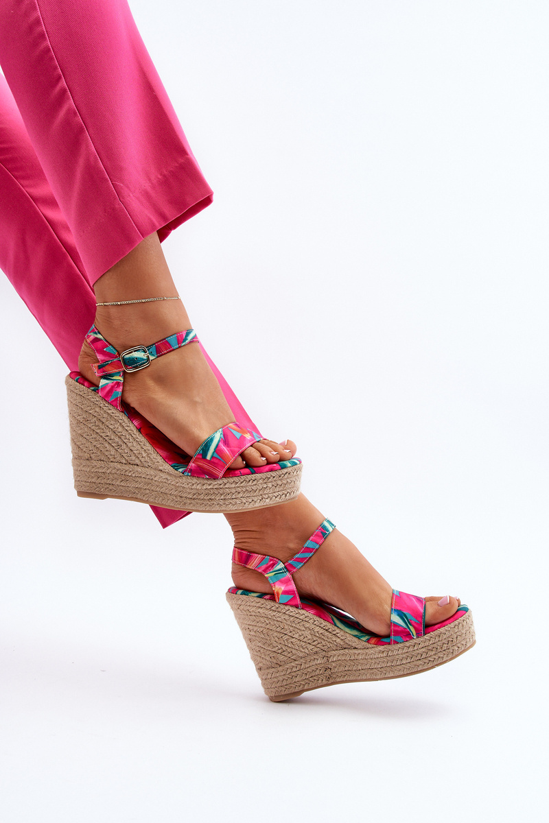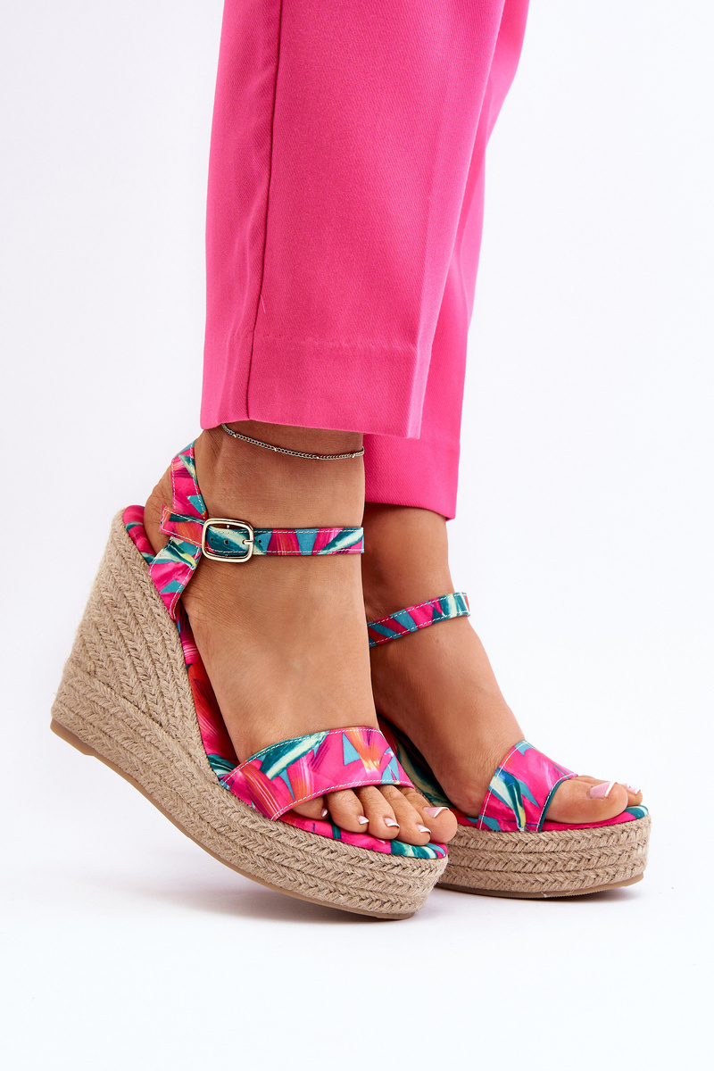 Босоніжки на танкетці з малюнком кольору фуксія Anihazra