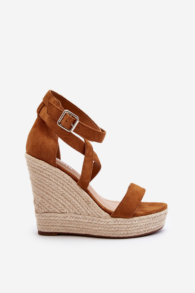 Босоніжки на танкетці з плетеними деталями. Коричневий сальт