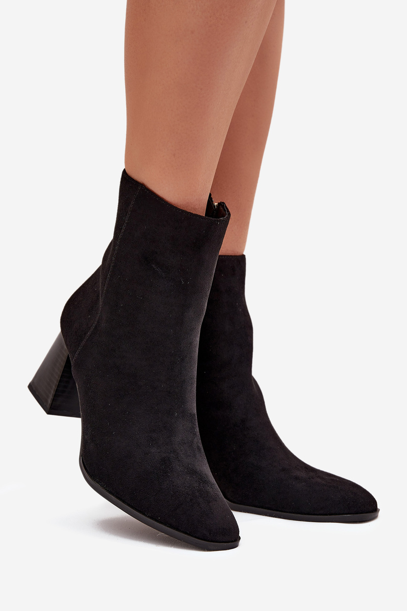 Ботильйони Для Жінок З Еко Замші На Каблуках З Замком Чорні Zelita