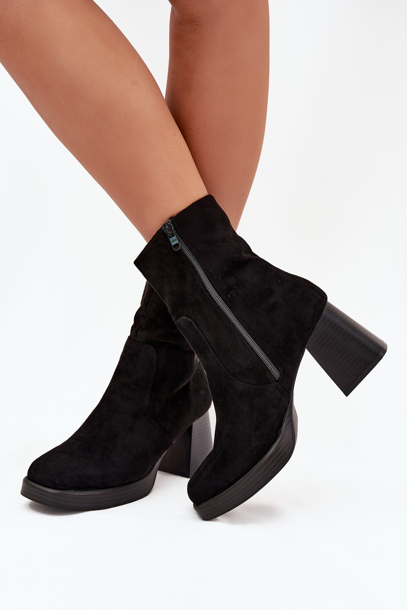 Ботильйони Жіночі На Каблуку З Еко Замшевим Замком Чорні Serinna