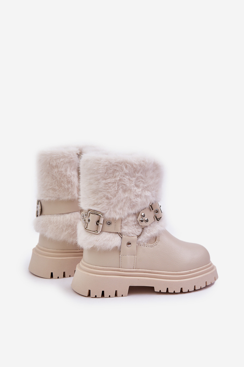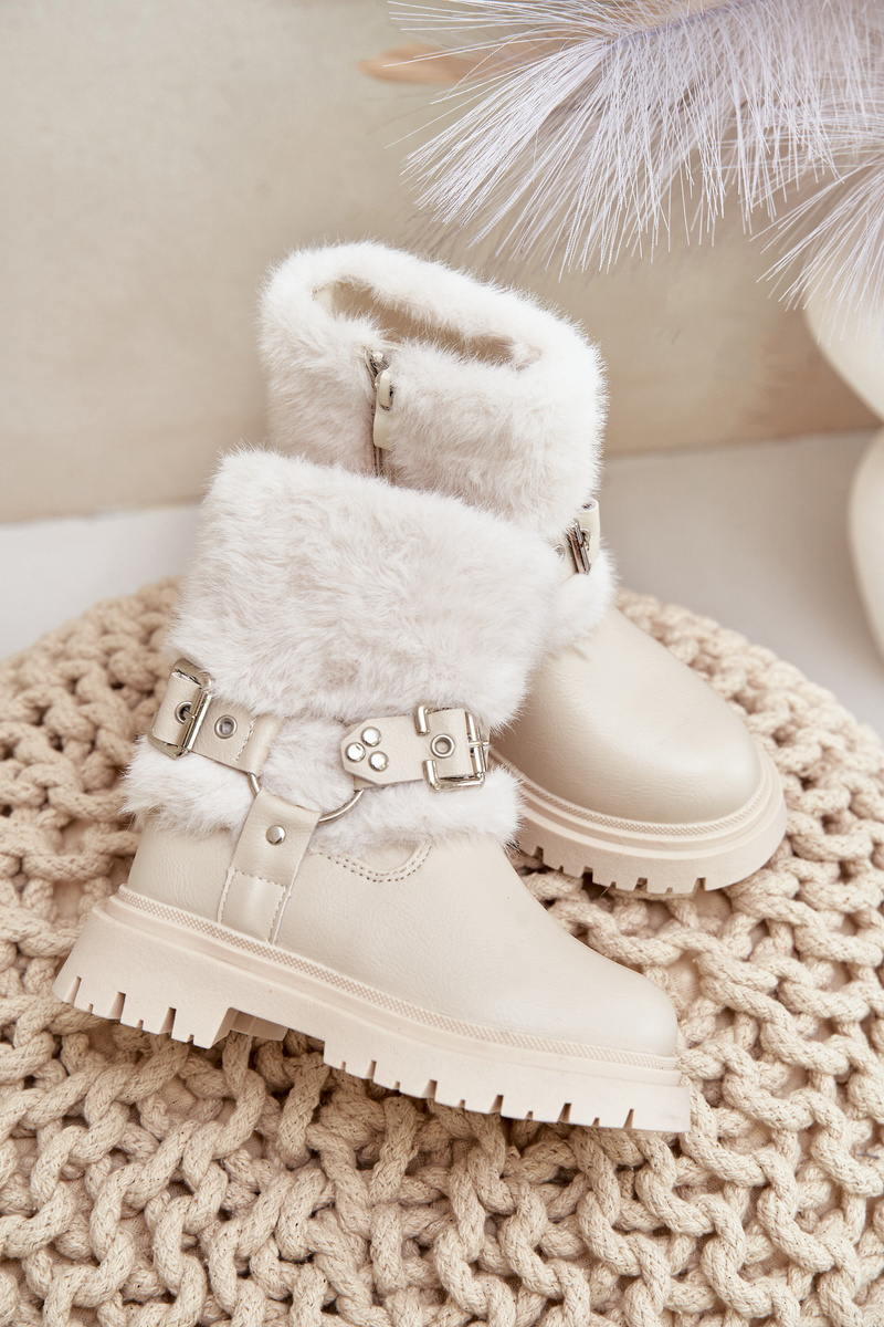 Ботильйони для дівчаток з екошкіри з хутром і пряжками, бежевий Cartemes