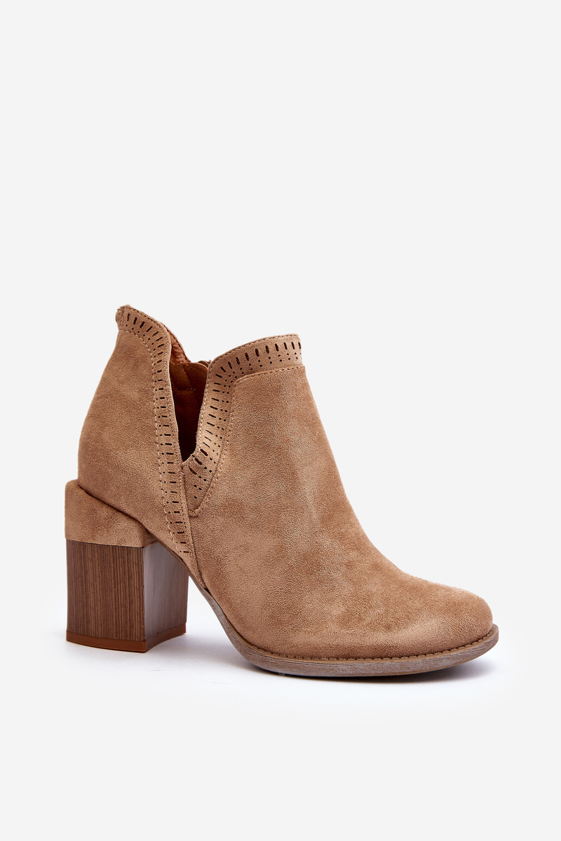 Ботильйони на масивному каблуці з вирізом світло-бежевого кольору Jolnima