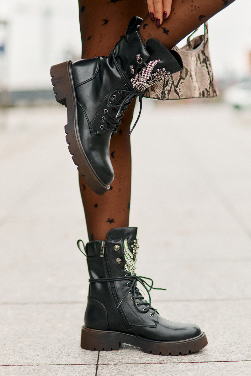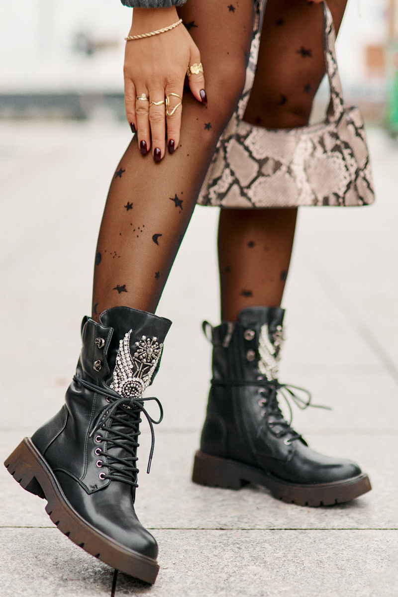Утеплені робочі ботильйони з екошкіри – стильний і функціональний варіант для прохолодних днів. Встановлені на плоску п'яту, вони забезпечують комфорт під час носіння, а завдяки блискавці та шнурівці легко підганяються по нозі. Закруглені пальці додають класичного вигляду, а прикраса на язику створює модний акцент. Це ідеальний вибір для тих, хто цінує комфорт і оригінальний дизайн в повсякденних образах. Обираючи розмір, орієнтуйтеся на таблицю розмірів.